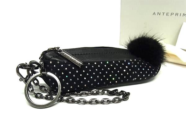 ■極美品■ ANTEPRIMA アンテプリマ レザー×スエード ファー キーリング キーホルダー チャーム レディース ブラック系 BN4281