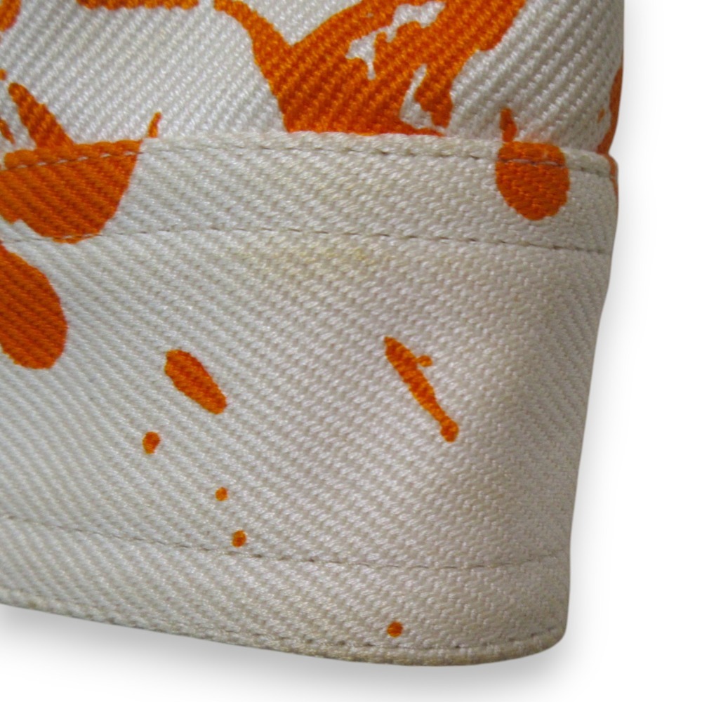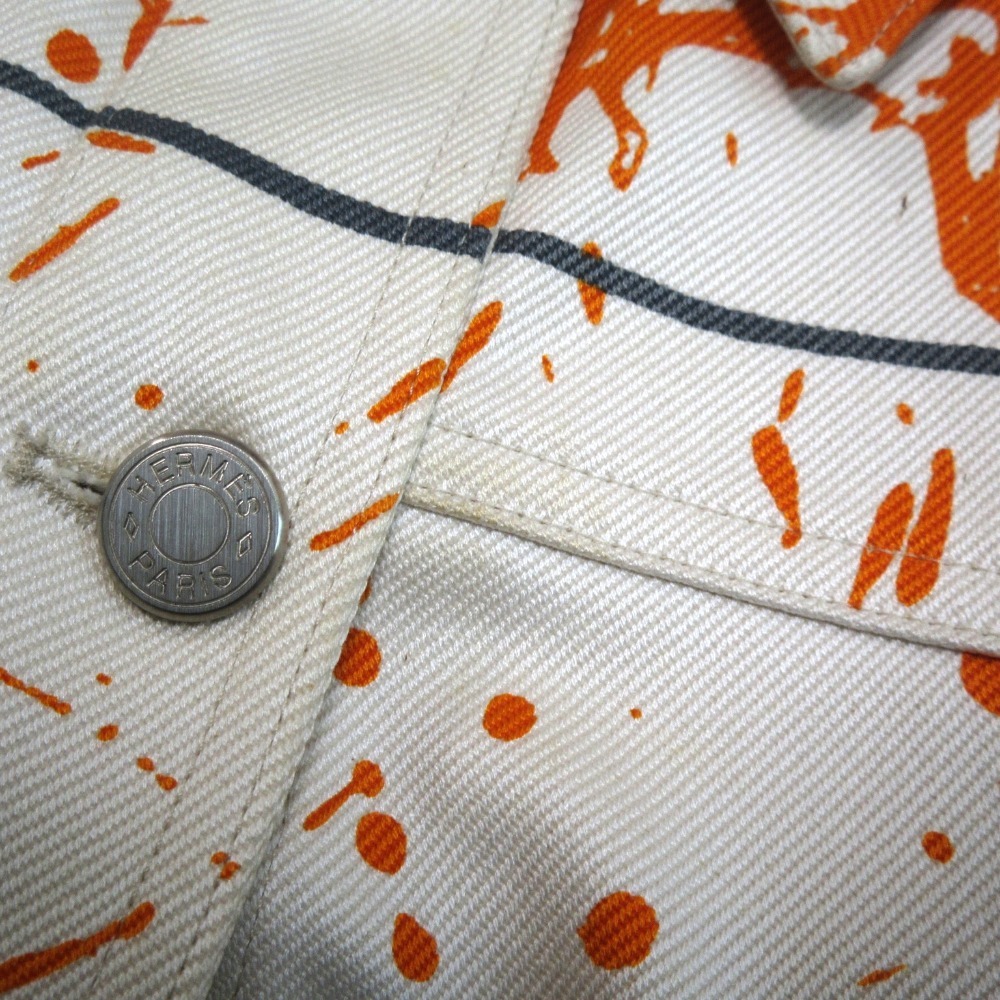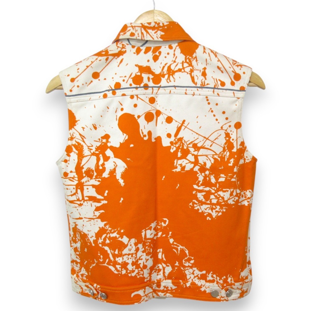 良品 HERMES エルメス マルジェラ期 ペイント 総柄 シルク セリエボタン デニム トラッカーベスト SM オレンジ×アイボリー