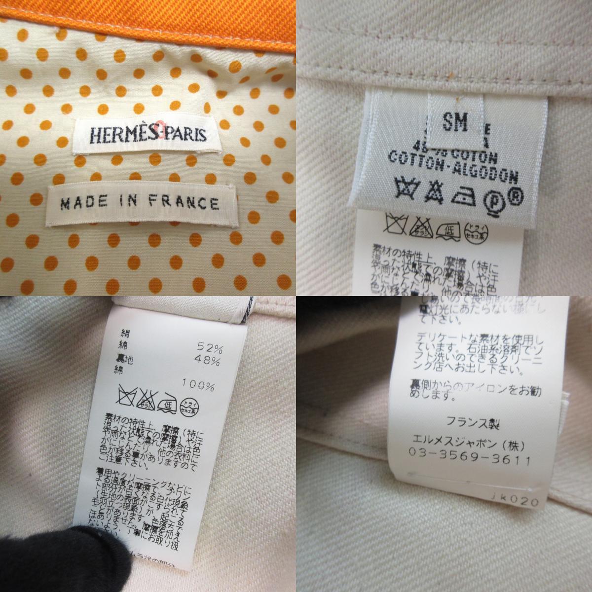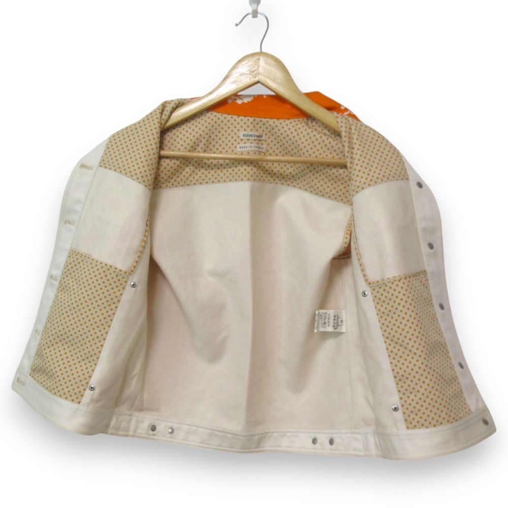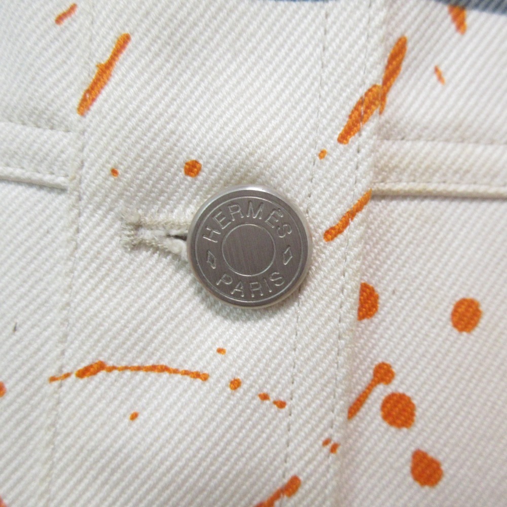 商品名:HERMES エルメス マルジェラ期 ペイント 総柄 シルク セリエボタン デニム トラッカーベスト SM オレンジ×アイボリー