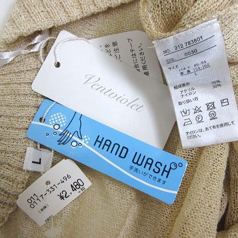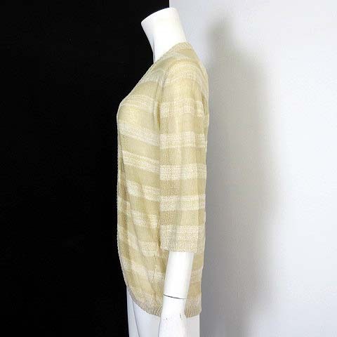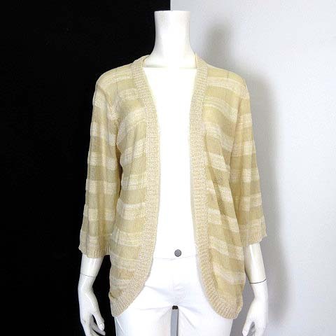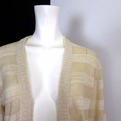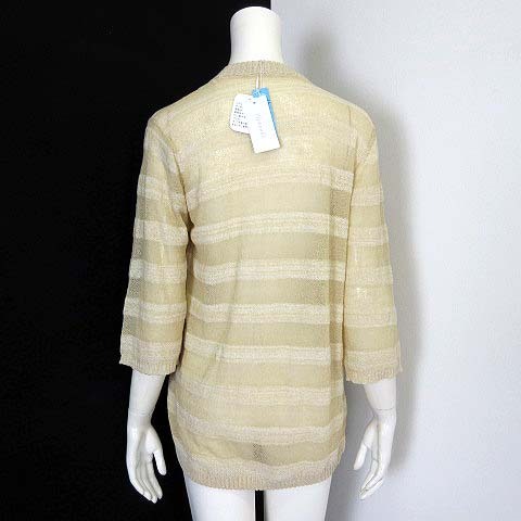 未使用品 Ventuiolet カーディガン サマーニット ボーダー柄 トッパー 羽織り 透かし編み 7分袖 L ベージュ 杢アイボリー タグ付 美品
