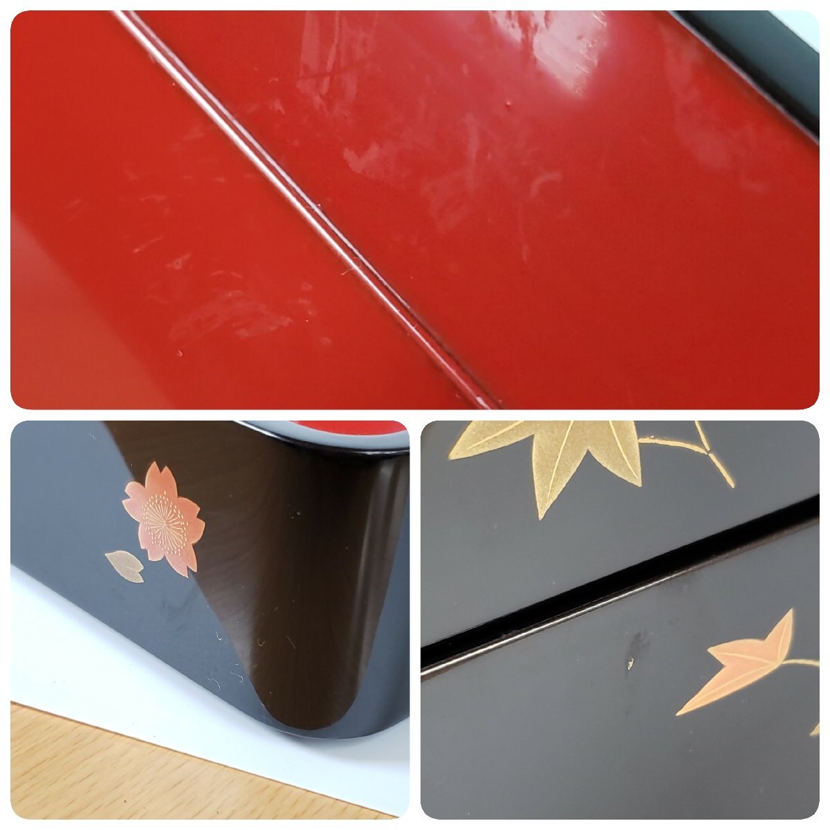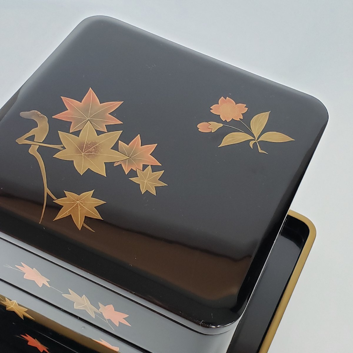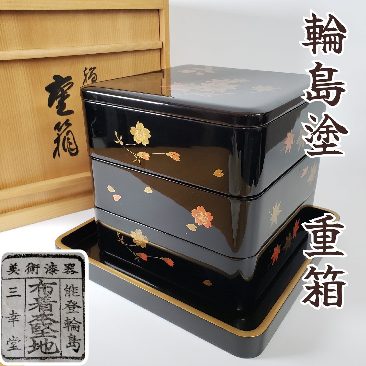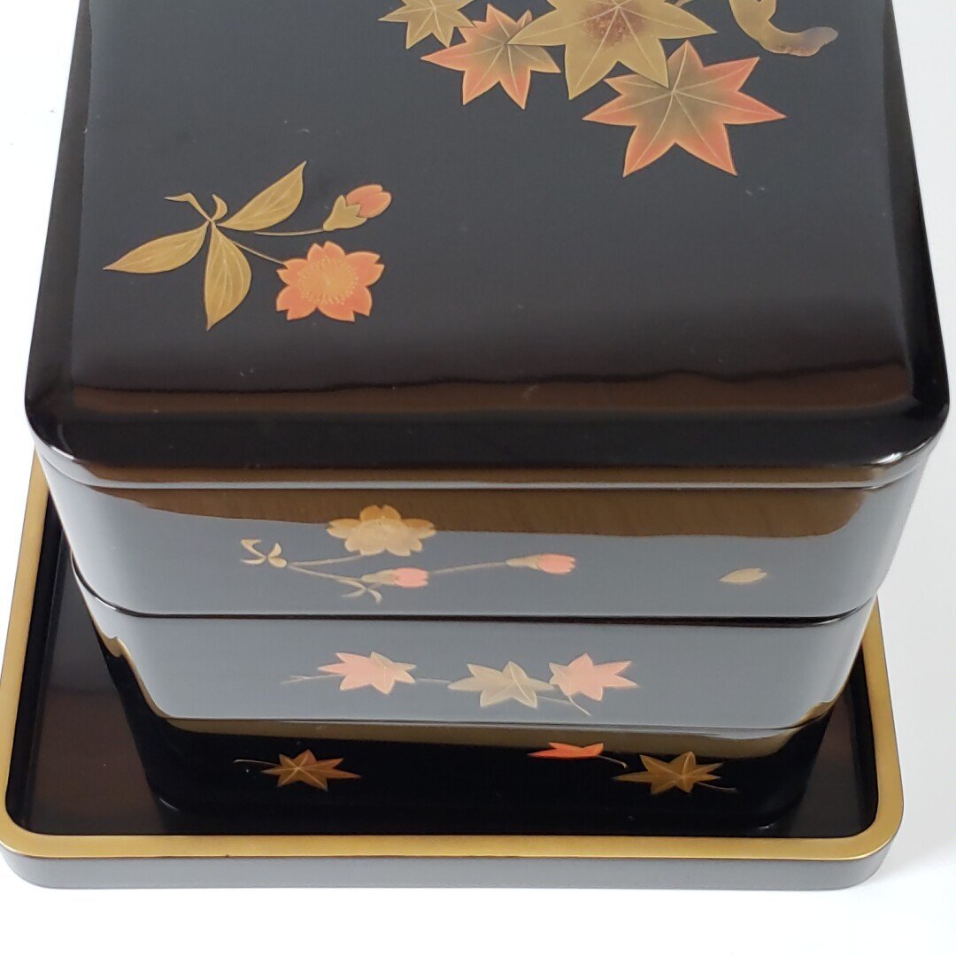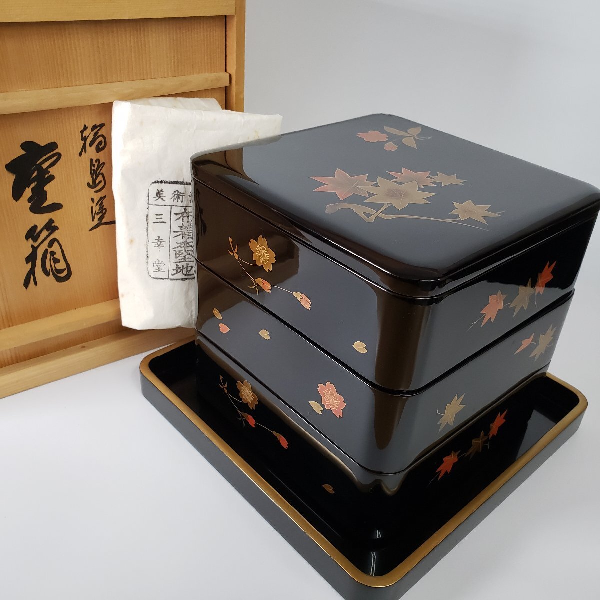 商品名 | 三段重箱 輪島塗 三幸堂 能登輪島 布着本堅地 蒔絵 紅葉 桜 金彩 漆芸 木箱 伝統工芸品 骨董 美術品 おせち お正月 お重【 | |||||||||||||||||||||||||