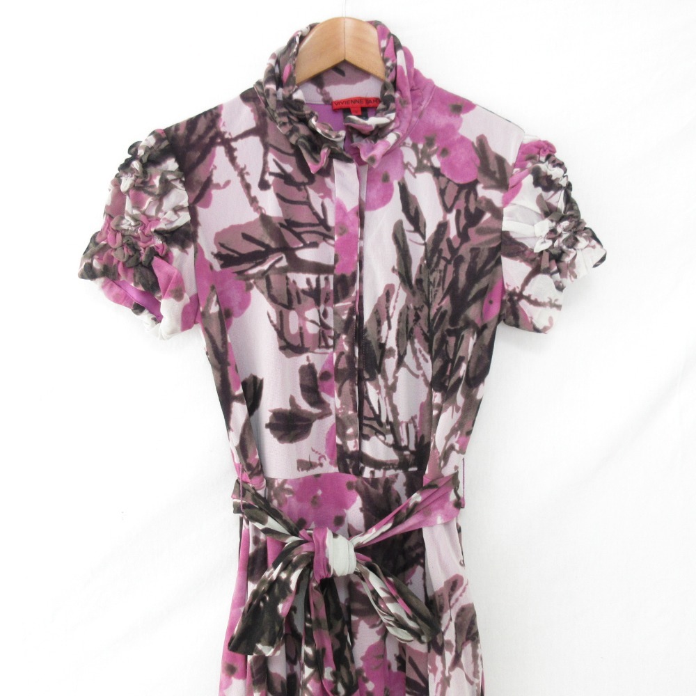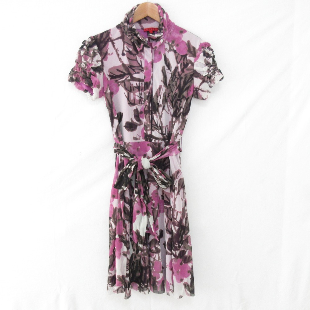 美品 VIVIENNE TAM ヴィヴィアンタム パワーネット シャーリングスリーブ ウエストリボン ワンピース サイズ40 パープル