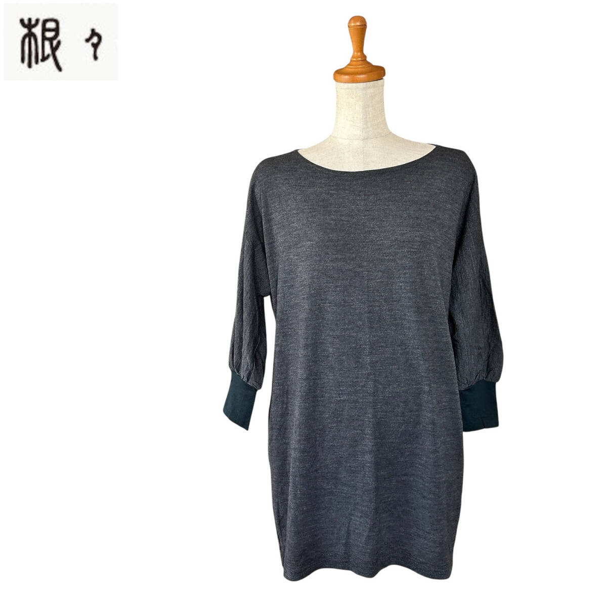 【根々】7分袖ニットチュニック/薄手/バイカラー★群言堂