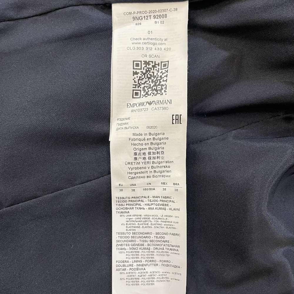 商品名:EMPORIO ARMANI エンポリオアルマーニ ウール 1B テーラードジャケット 38 ネイビー