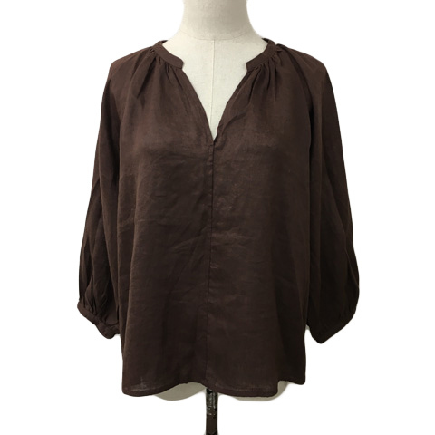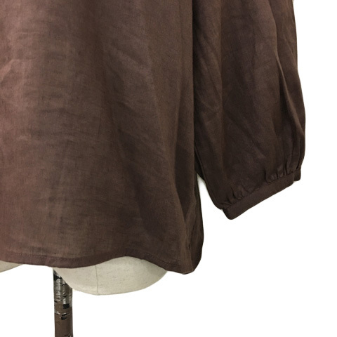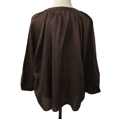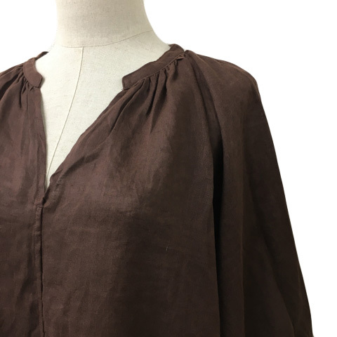 テチチ Te chichi ブラウス シャツ プルオーバー キーネック リネン 無地 ギャザー 長袖 フリー 茶 ブラウン レディース