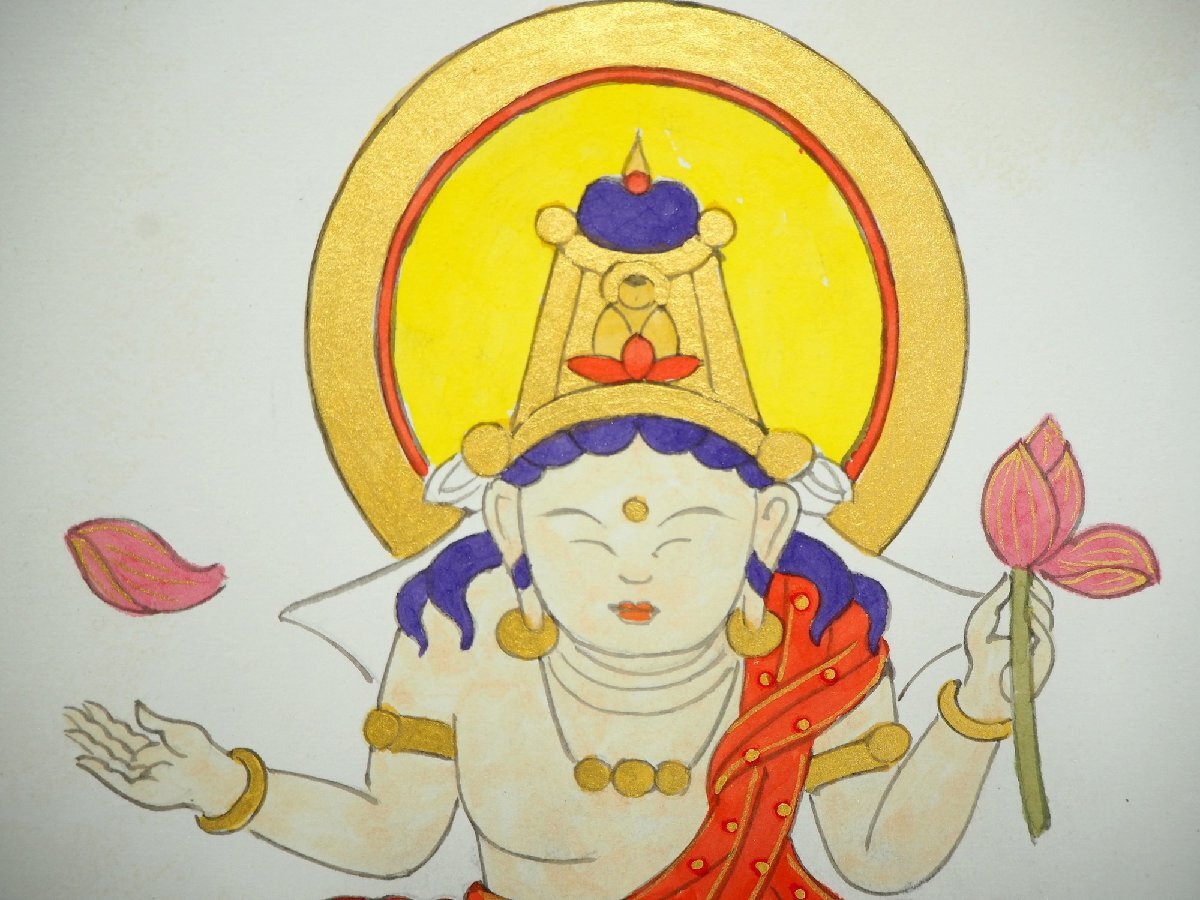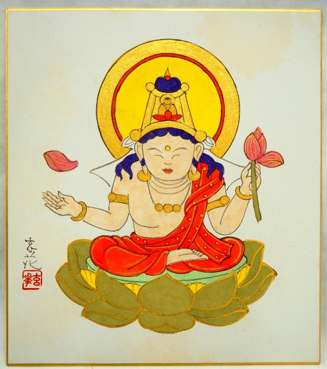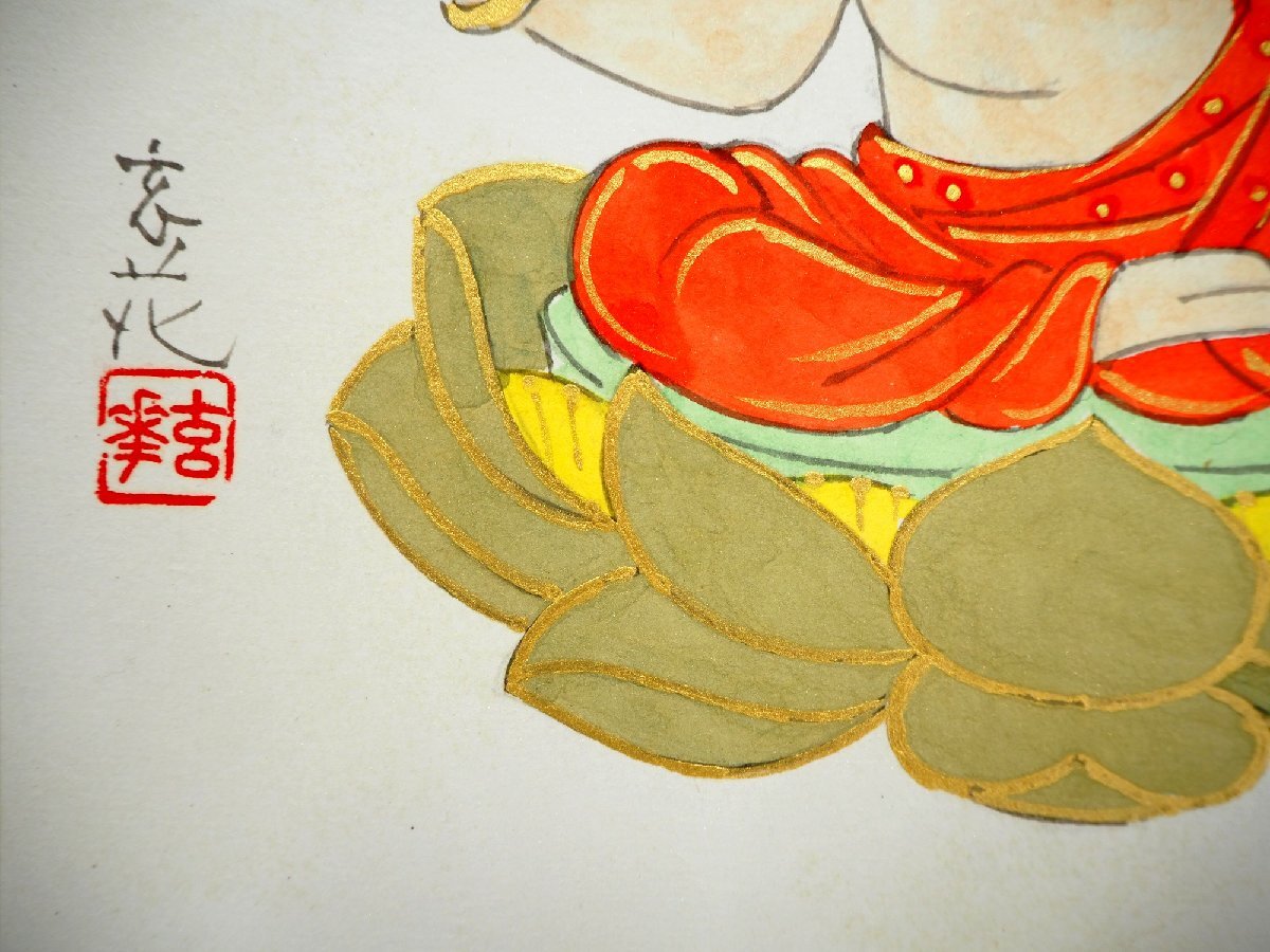 ★☆ 真筆保証【 今井玄花 「聖観世音菩薩像(座象)」 色紙 水彩画 肉筆 】富山県出身 仏画 仏教美術 ☆★