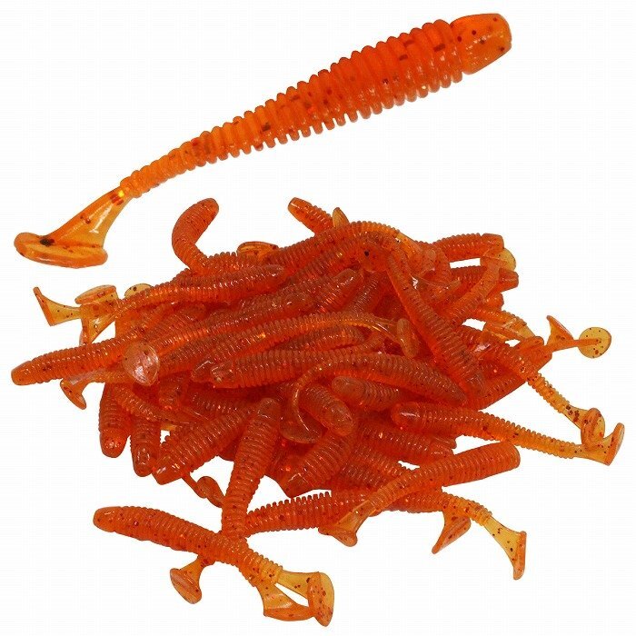 【新品即納】ソフト ルアー 50個 ワーム セット オレンジ 橙 2インチ 5cm/50mm シャッドテール プルプル 震える ジグヘッド スプリット