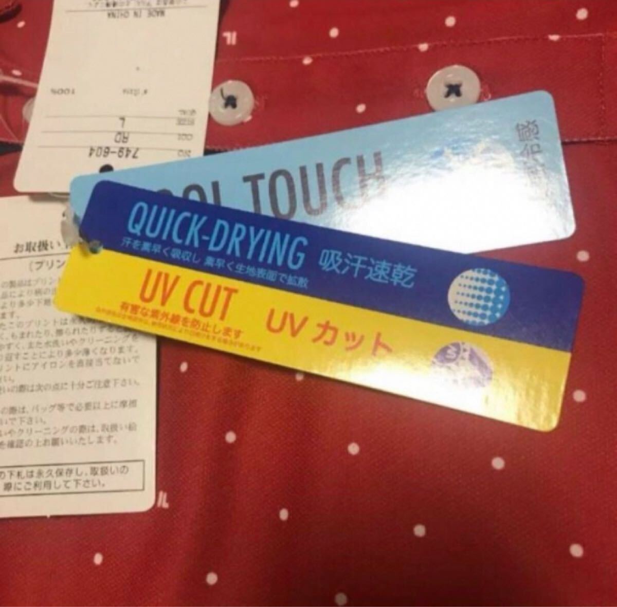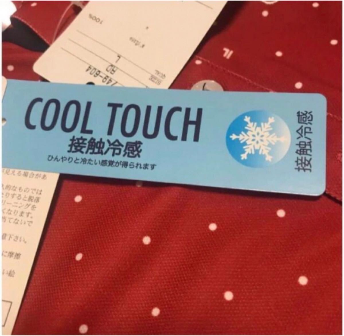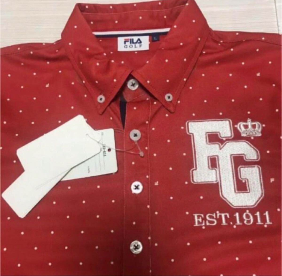 ドット柄、半袖ボタンダウンシャツ。ベーシックなドット柄は幅広いシーンで活用できるアイテムです。胸のFGマーク、衿裏と下前立て配色カラーが好印象なデザインです。夏のラウンドにお勧め、肌に触れた瞬間からヒンヤリ涼しい、接触冷感素材を使用しています。