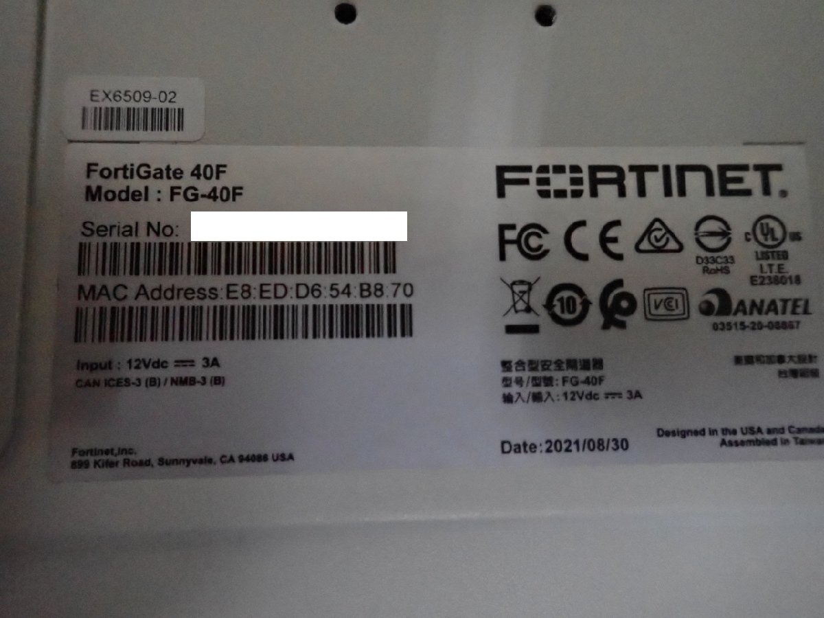 【初期化済・動作確認済】Fortinet FortiGate 40F セキュリティUTM 本体+電源アダプター ライセンス有効期限2026/03/19 (@1227)