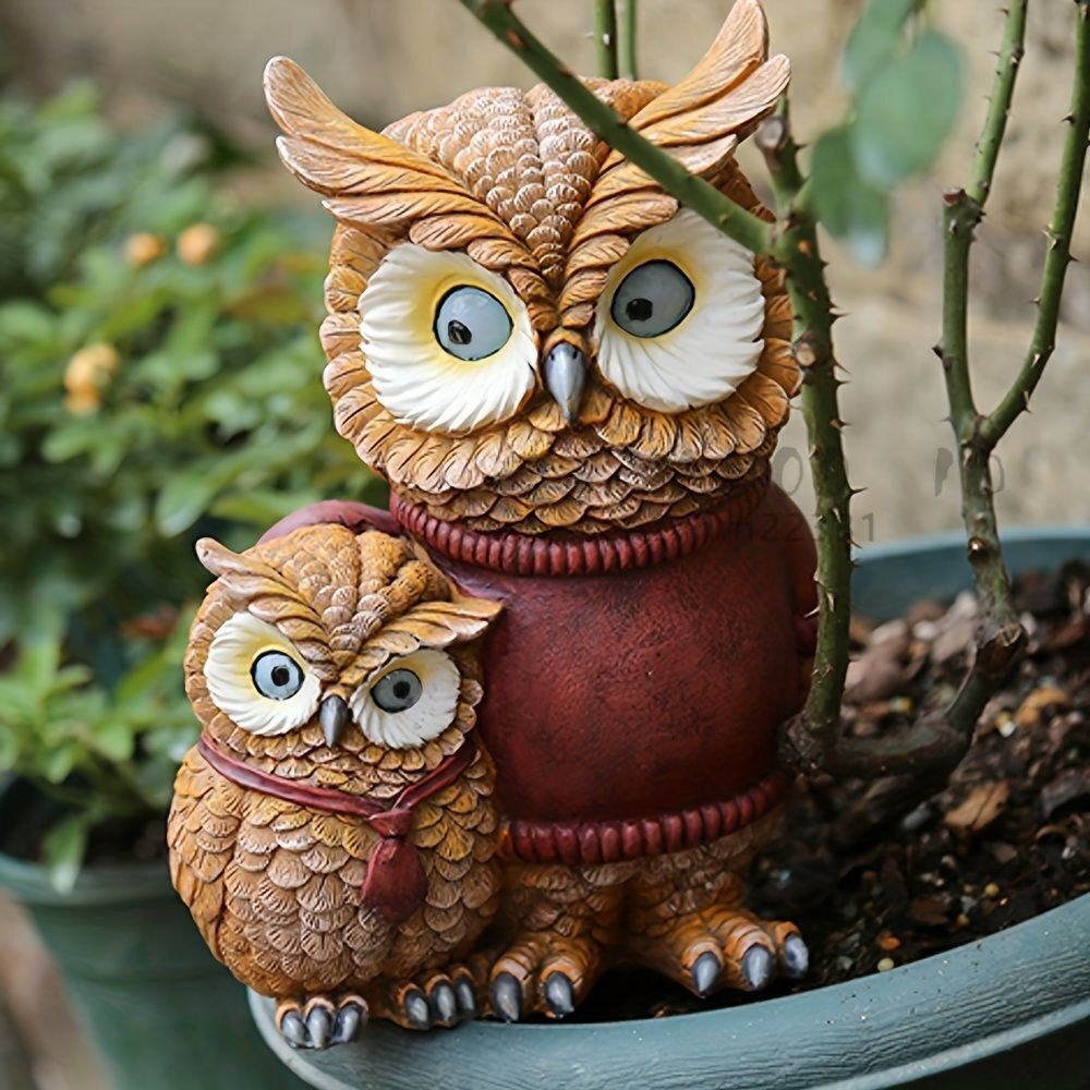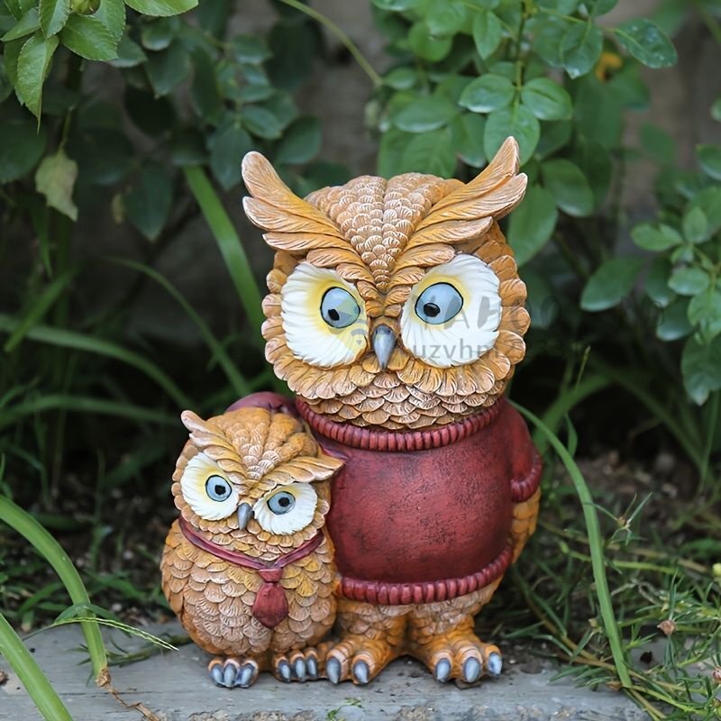可愛らしいフクロウの親子の置物です。樹脂製で、室内外を問わず使用できるインテリアアイテム。玄関やリビング、ダイニングなどにちょっとした可愛らしさをプラスします。フクロウの愛らしい表情が、見る人を癒やすことでしょう。
