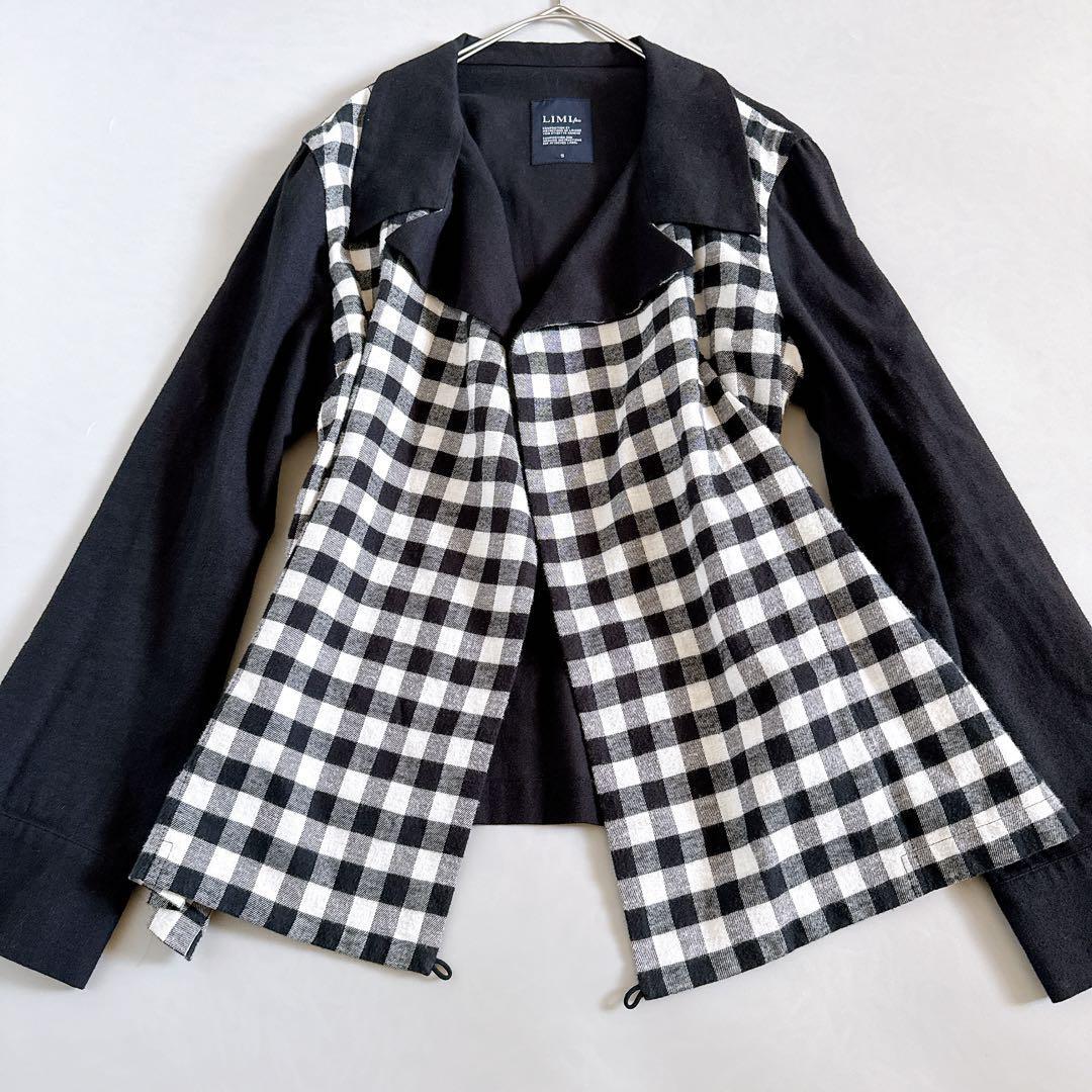LIMIfeu リミフゥ 変形ジャケット シャツジャケット ギンガムチェック レイヤード風 デザイナーズ ヨウジヤマモト モード レディース コットンジャケット 日本製 正規品