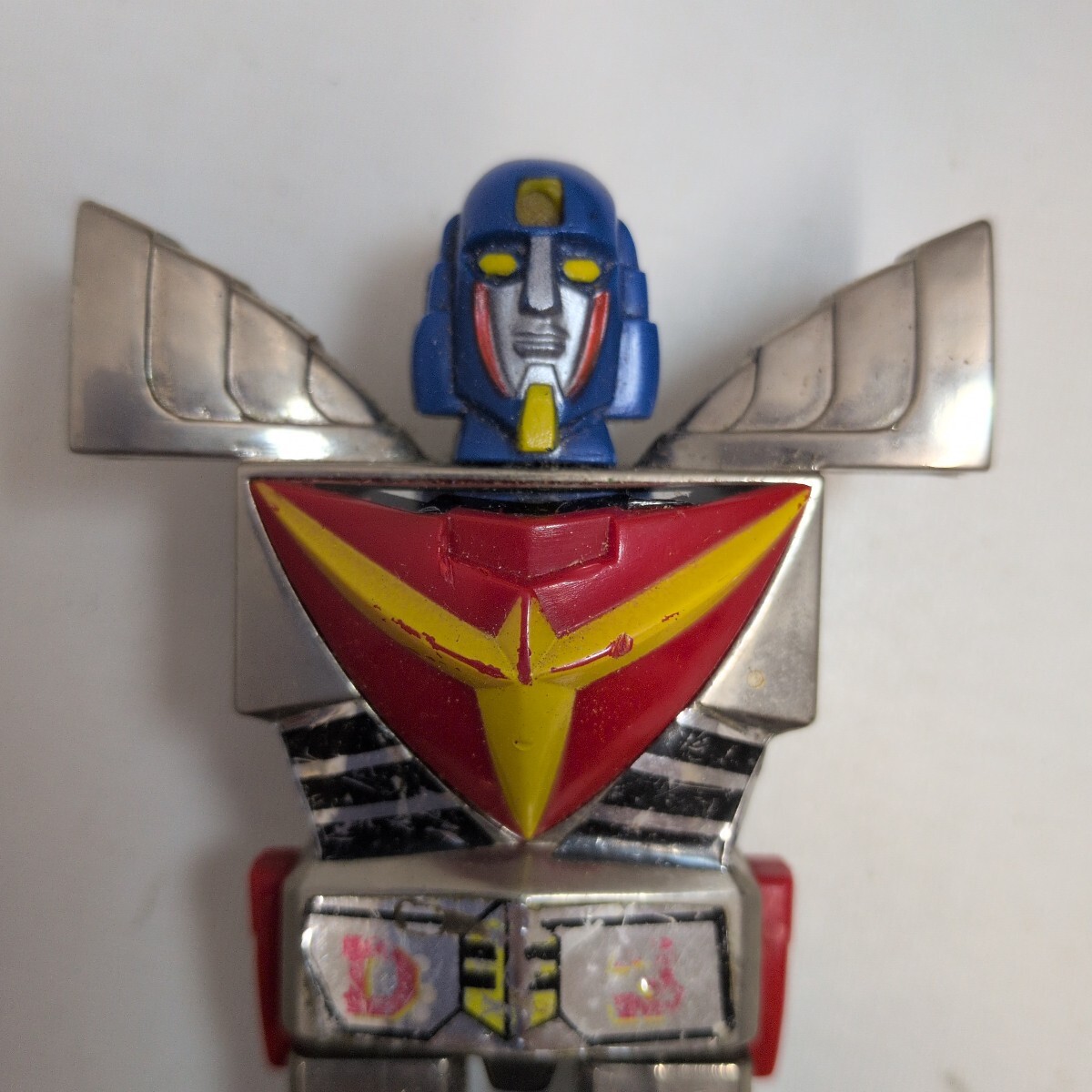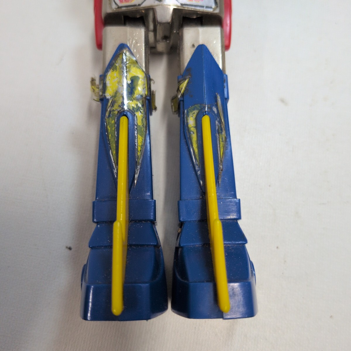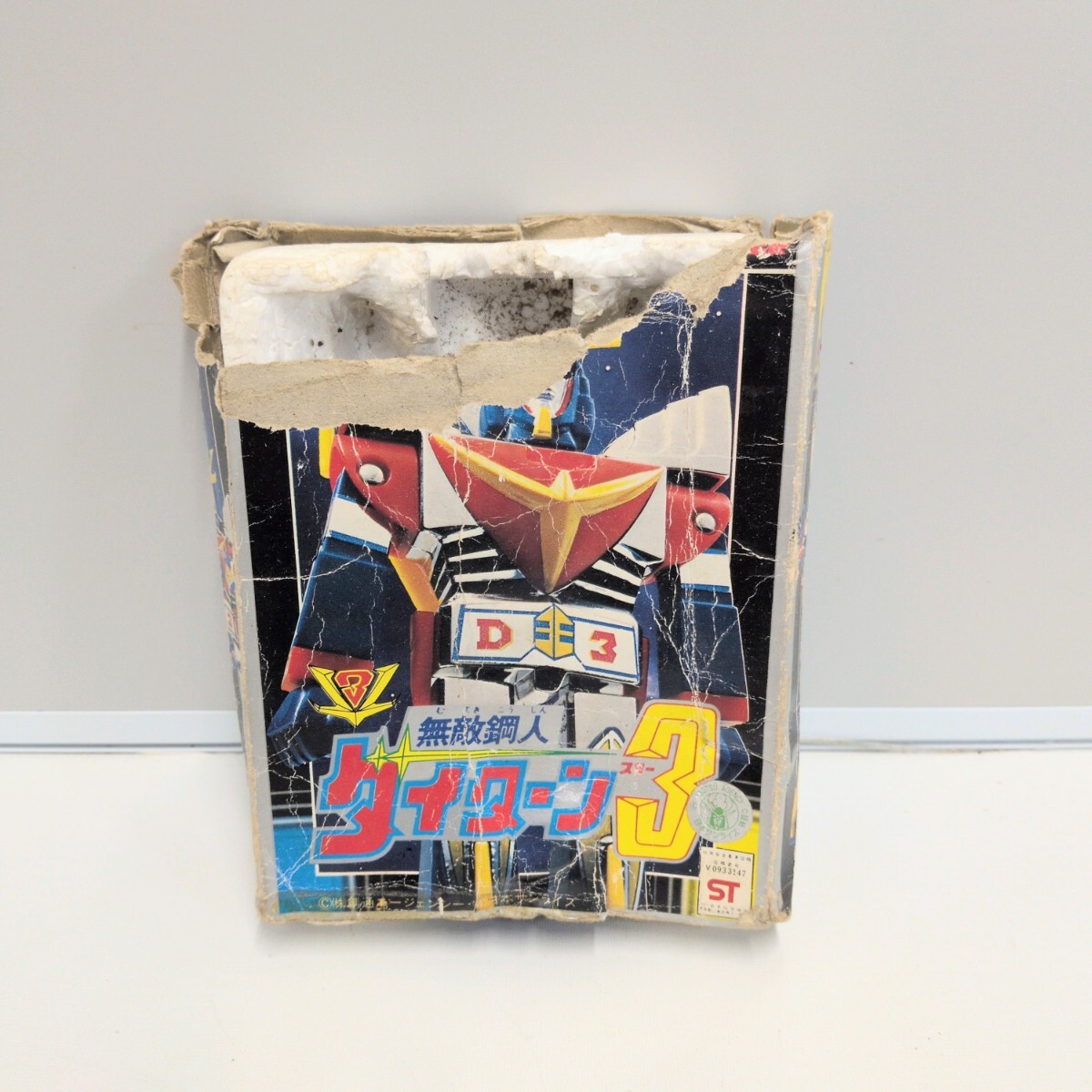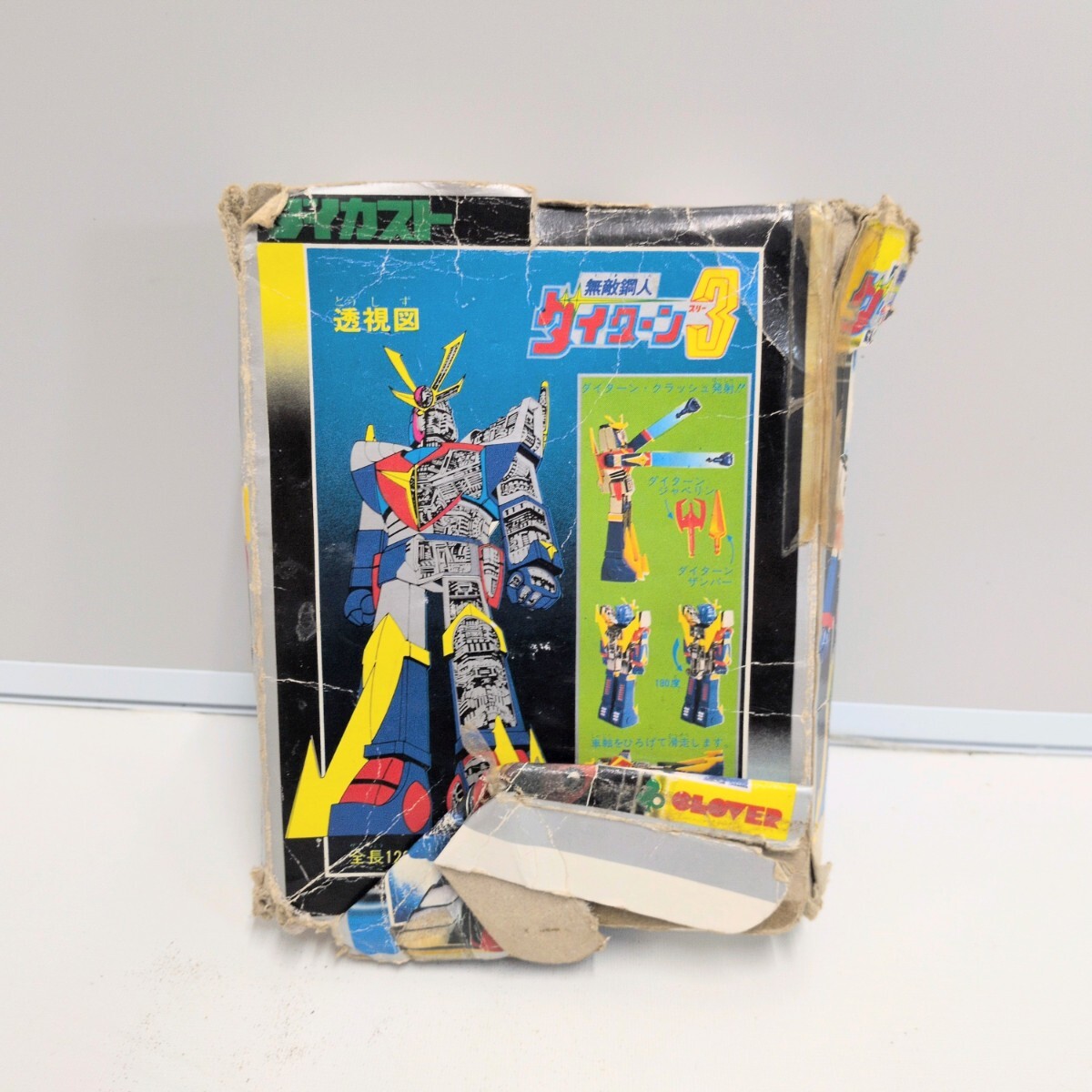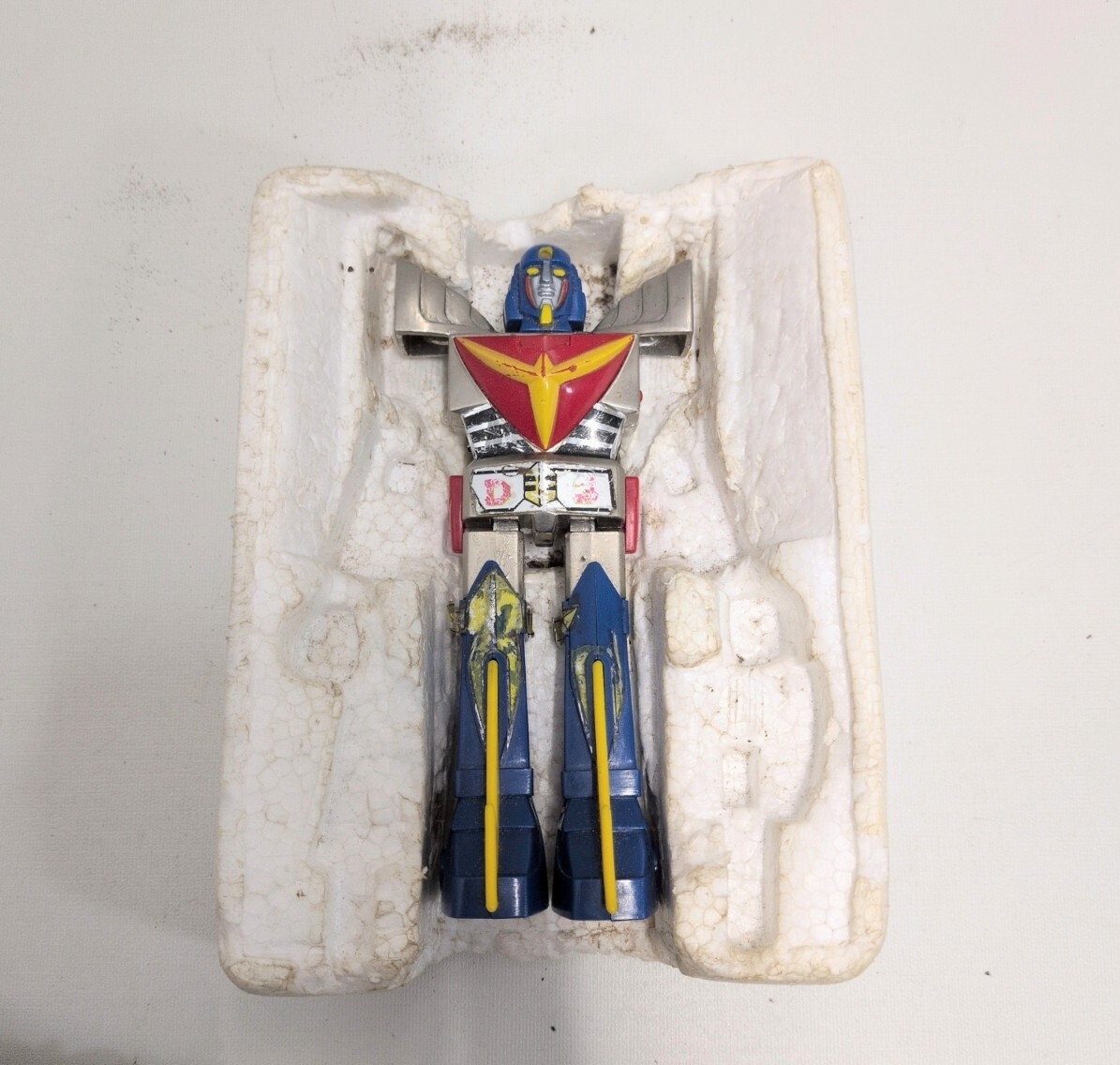 箱はボロボロ、倉庫に入れっぱなしだったため、箱の中には土やホコリが付着しカビもあり、発泡スチロールには汚れがひどいです。箱の中には超合金の鉄かけら?破片があります。
