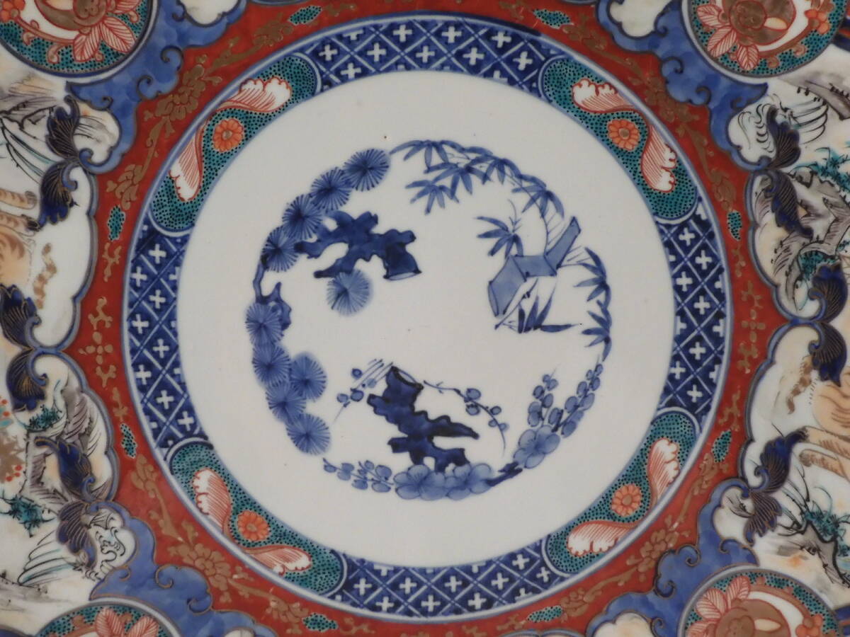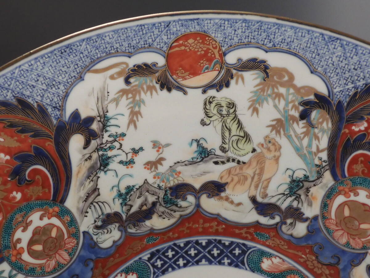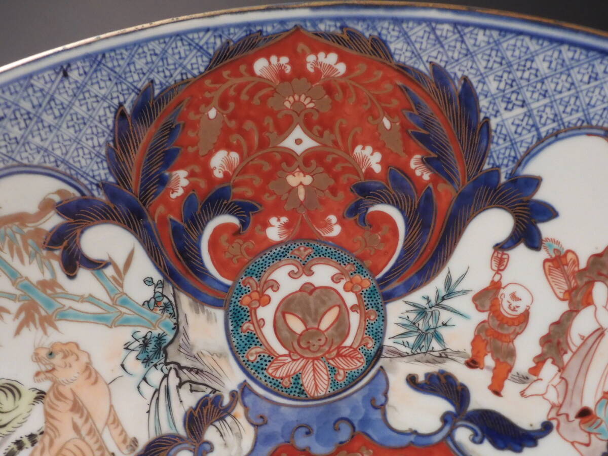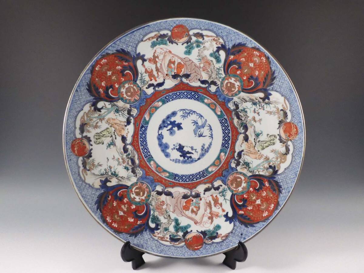 | ○栄○古伊万里 色絵 窓絵 布袋 唐子 虎図 大飾皿 56cm 無傷完品 江戸期 47kw202 |