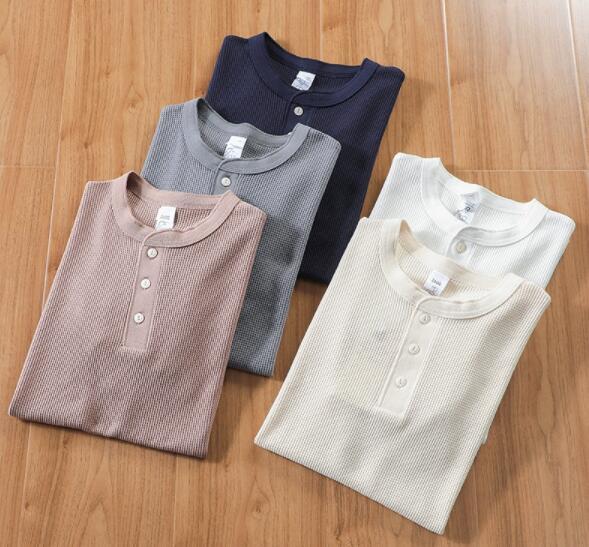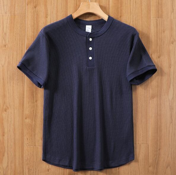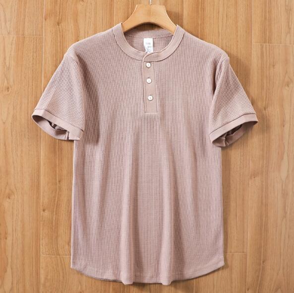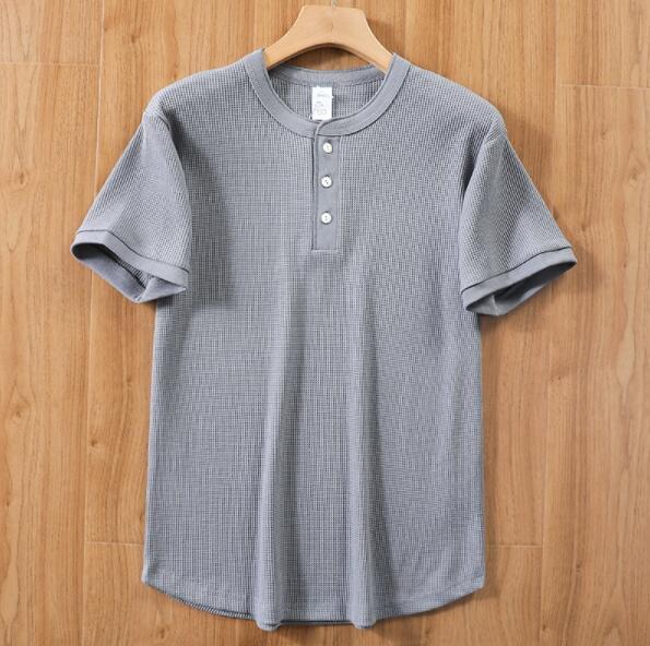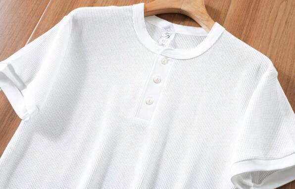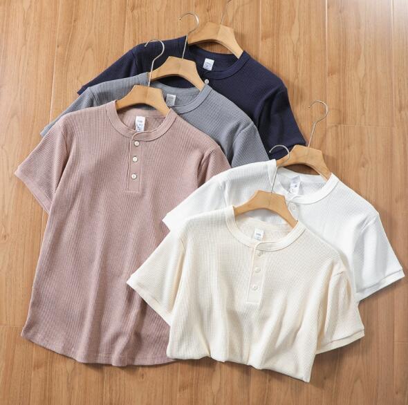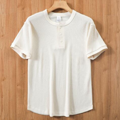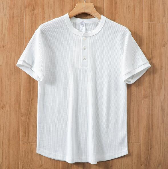 お色選択可XLホワイト 新品 綿 半袖Tシャツ ヘンリーネック ワッフル生地 三本針 クールビズ 通気 柔らかい 快適 春夏 軽量 爽やか Tシャツ