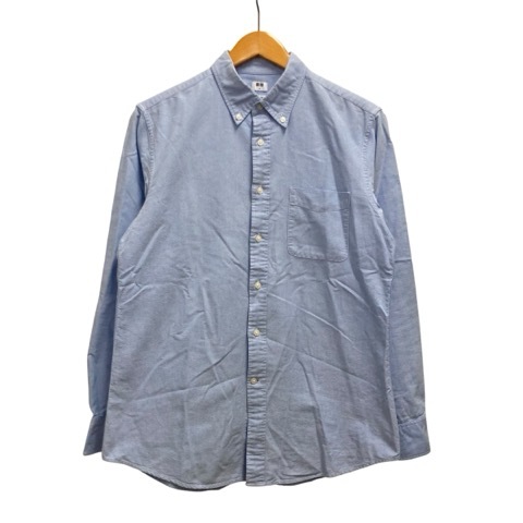 ユニクロ UNIQLO シャツ 長袖 ボタンダウンカラー 無地 コットン 331-409277 M 青 ブルー レディース