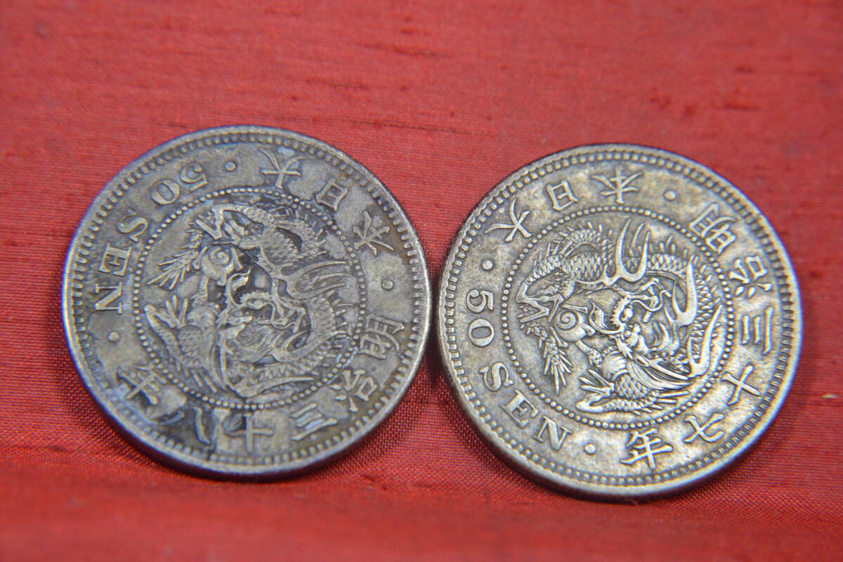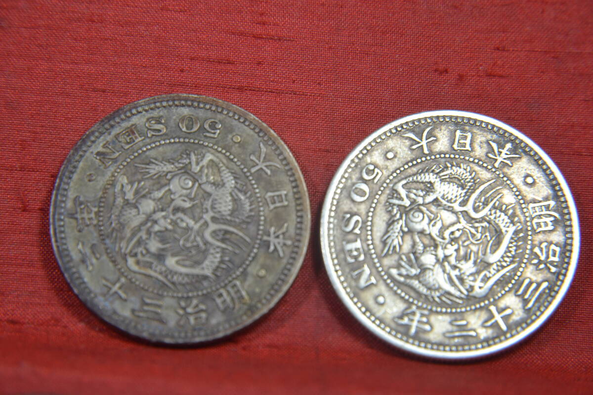 明治四~三十八年竜五十銭銀貨6枚です。