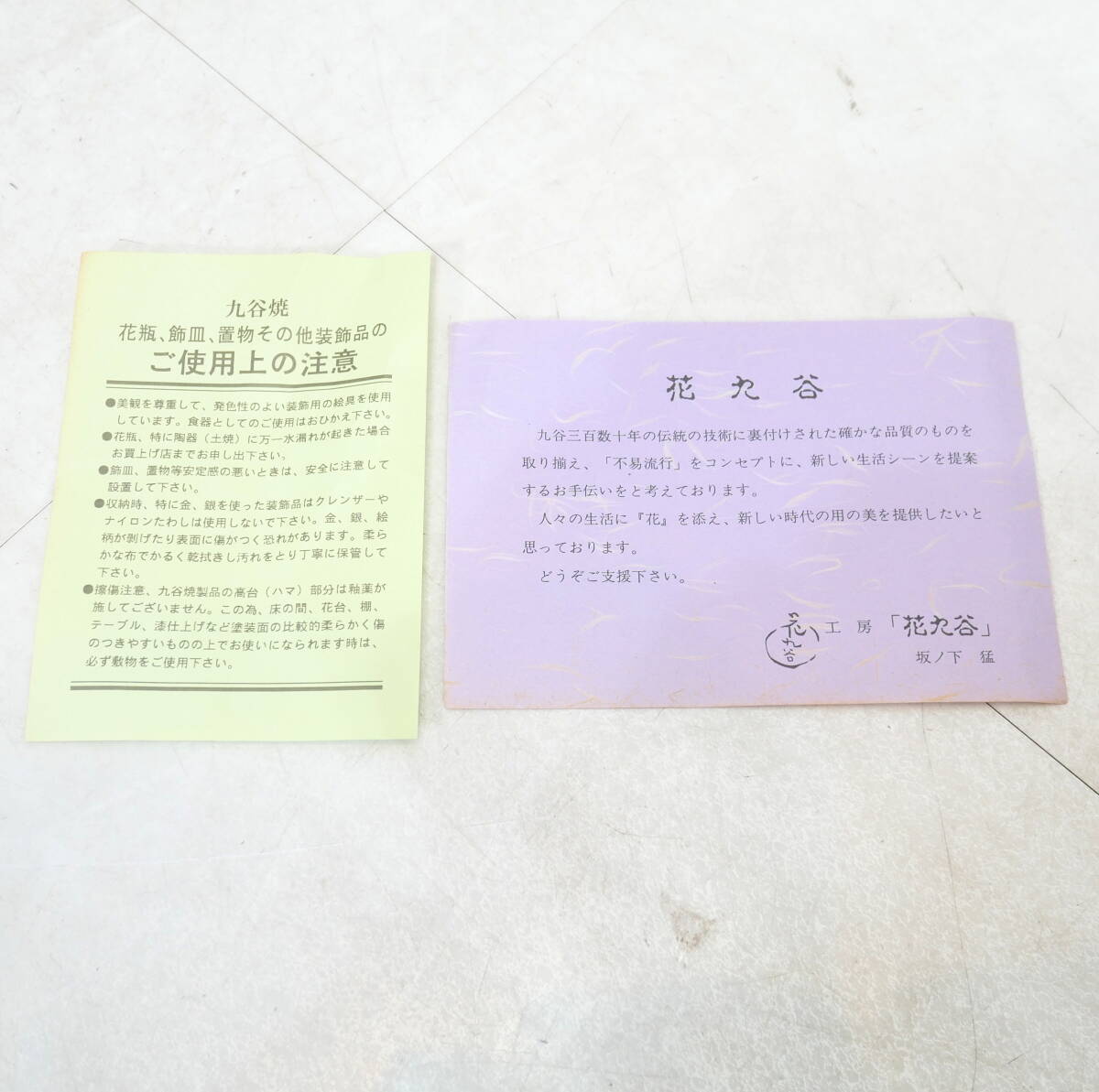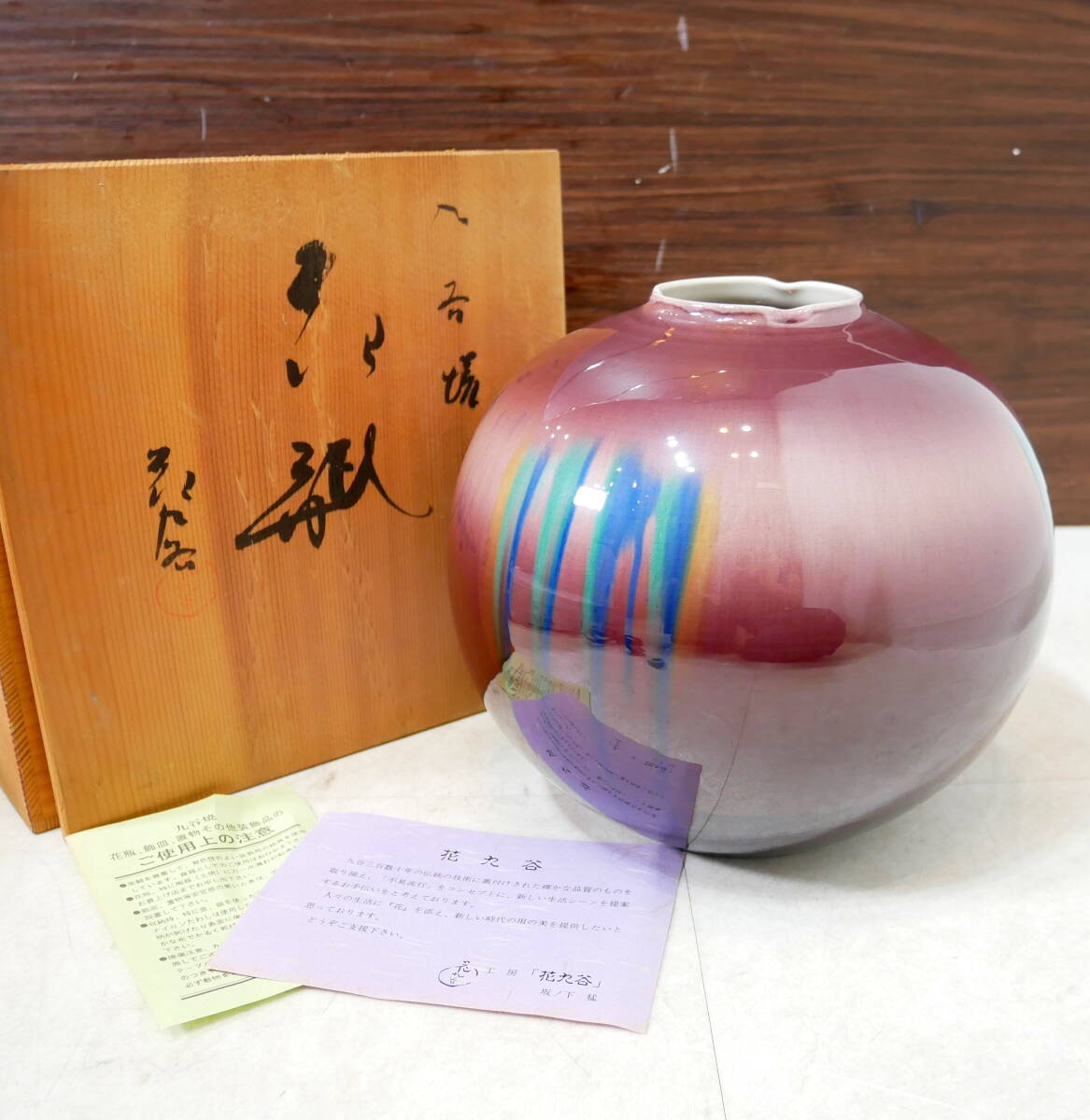 | 未使用保管品 九谷焼 花九谷 坂ノ下 猛 「紫釉花瓶」 花入 花瓶 共箱 | ||