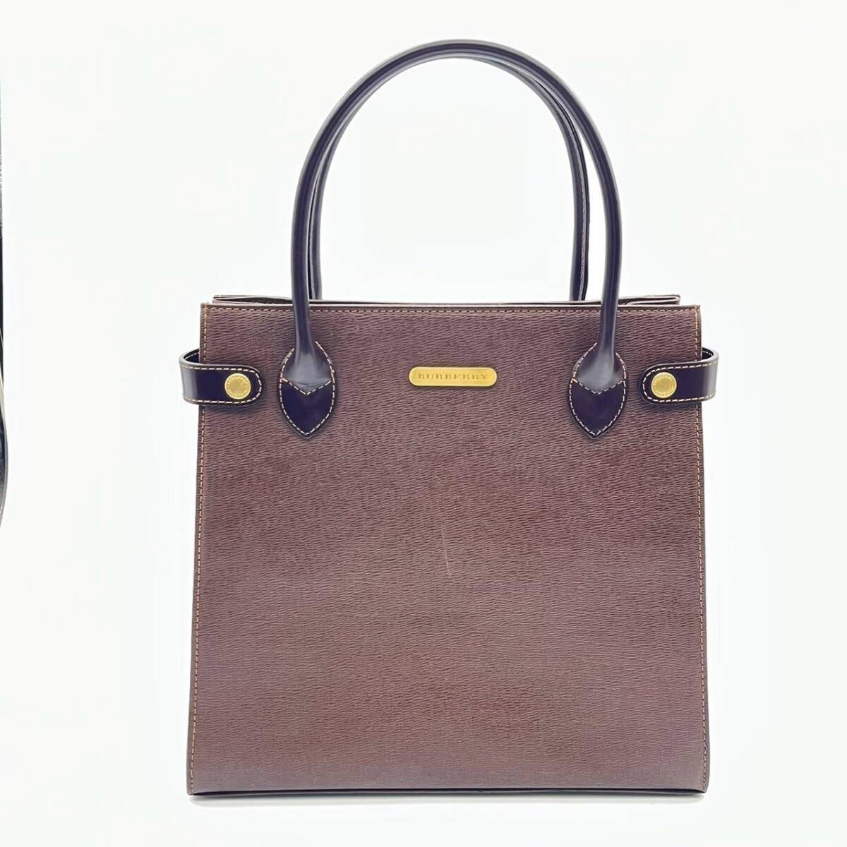 SW0311-1-3 BURBERRY バーバリー ハンドバッグ トートバッグ ブラウン 裏地チェック ステッチ レザー H27 W28.5 D13 100サイズ