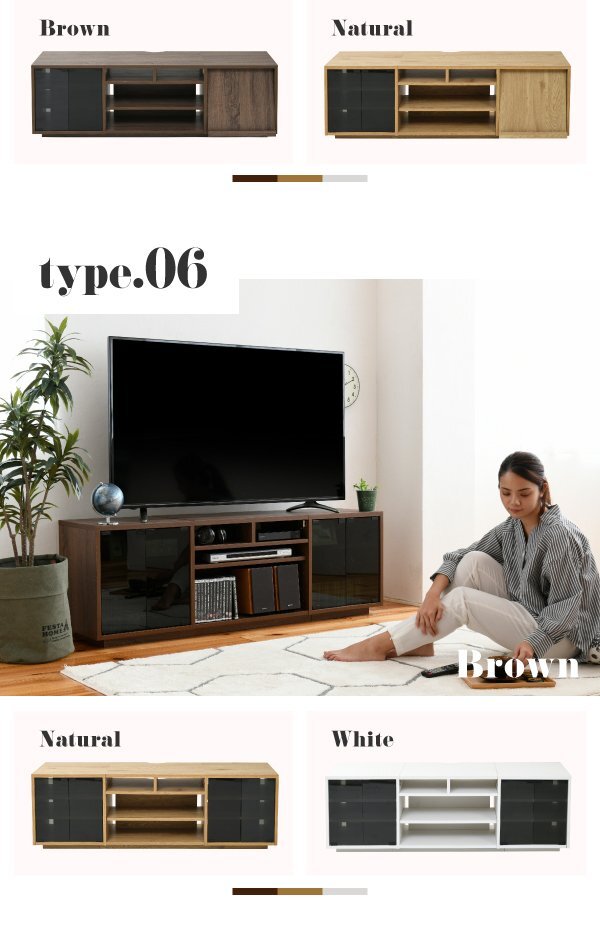 ※現在ご覧の商品ページはType06/ナチュラルのご購入ページとなります。 ヤフオクの仕様上単一ページに複数バリエーションを掲載することができませんので、他バリエーションが希望の場合は別ページでご購入お願い致します。 左右の収納をそれぞれ3種類から選べるテレビ台。 ※バリエーションが複数ございますので、画像のタイプをご参照の上、お間違えないようにご注文くださいませ。(不明点はお気軽にお問い合わせください) お好みのデザインや用途によって選択可能!大型テレビも置ける幅広で、ソファやイスに座ってちょうど良いハイタイプ。 ※撮影時の小物は付属しません。 配達業者を指定いただくことはできません。 沖縄・離島への配送は別途配送料が必要です。 ※別途送料が発生する場合は後ほどご連絡させていただきます。 タイミングによっては在庫切れの場合があります。