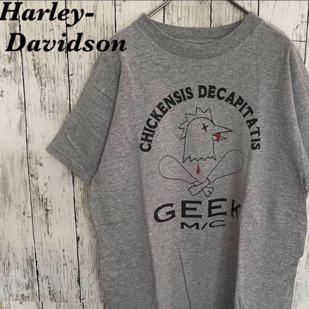 【貴重】Harley Davidson ハーレーダビッドソン 半袖 Tシャツ メンズ グレー 灰 Mサイズ GEEK MADE IN USA アメリカ製 ヴィンテージ 古着