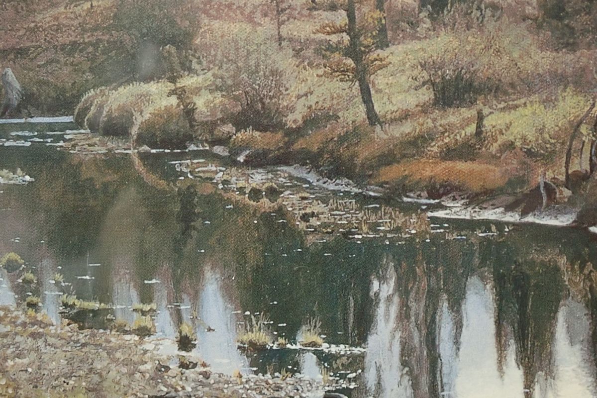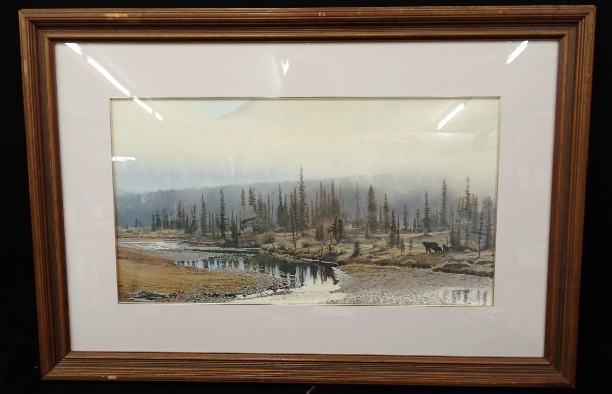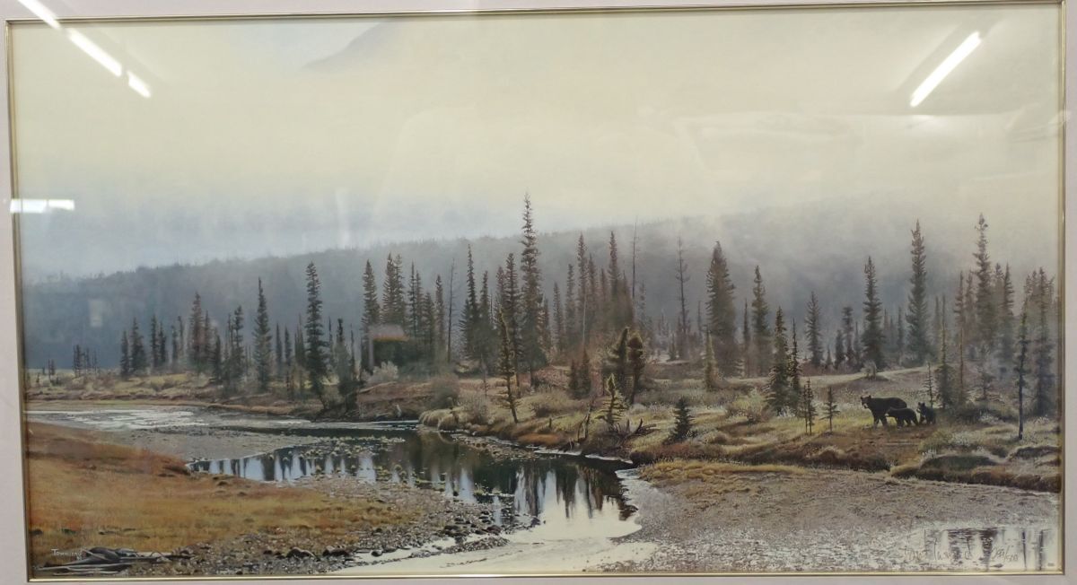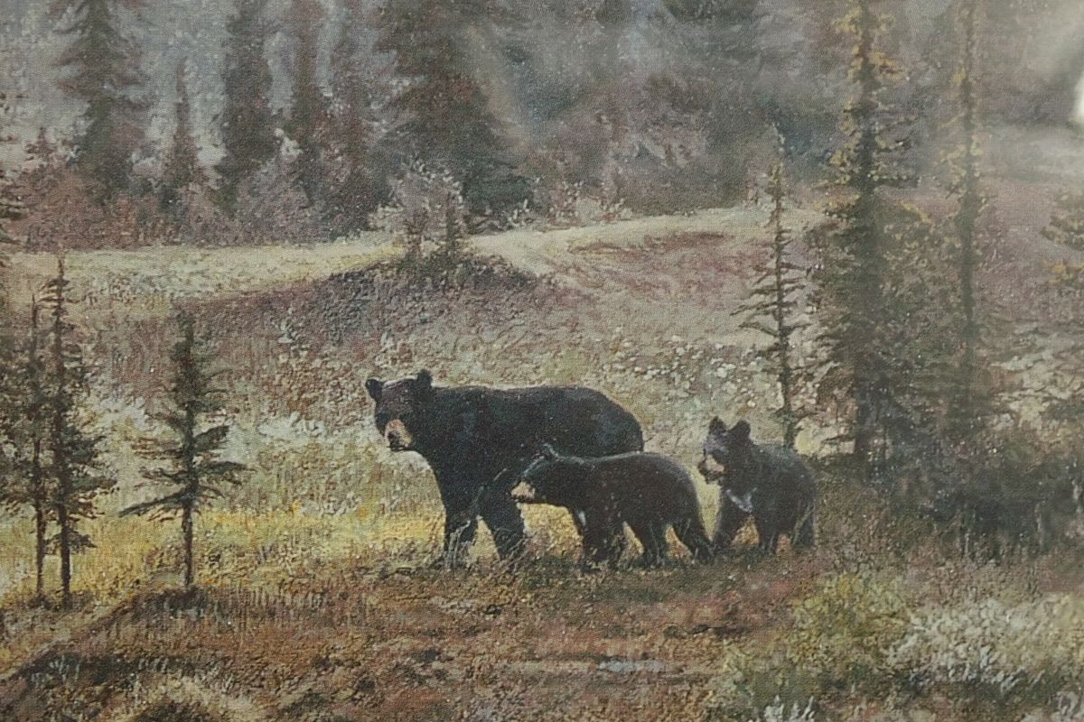 ◆37 絵画115 【真作】北欧カナダアラスカ風景「熊の親子」◆作者不明/画寸58×32㎝/消費税0円