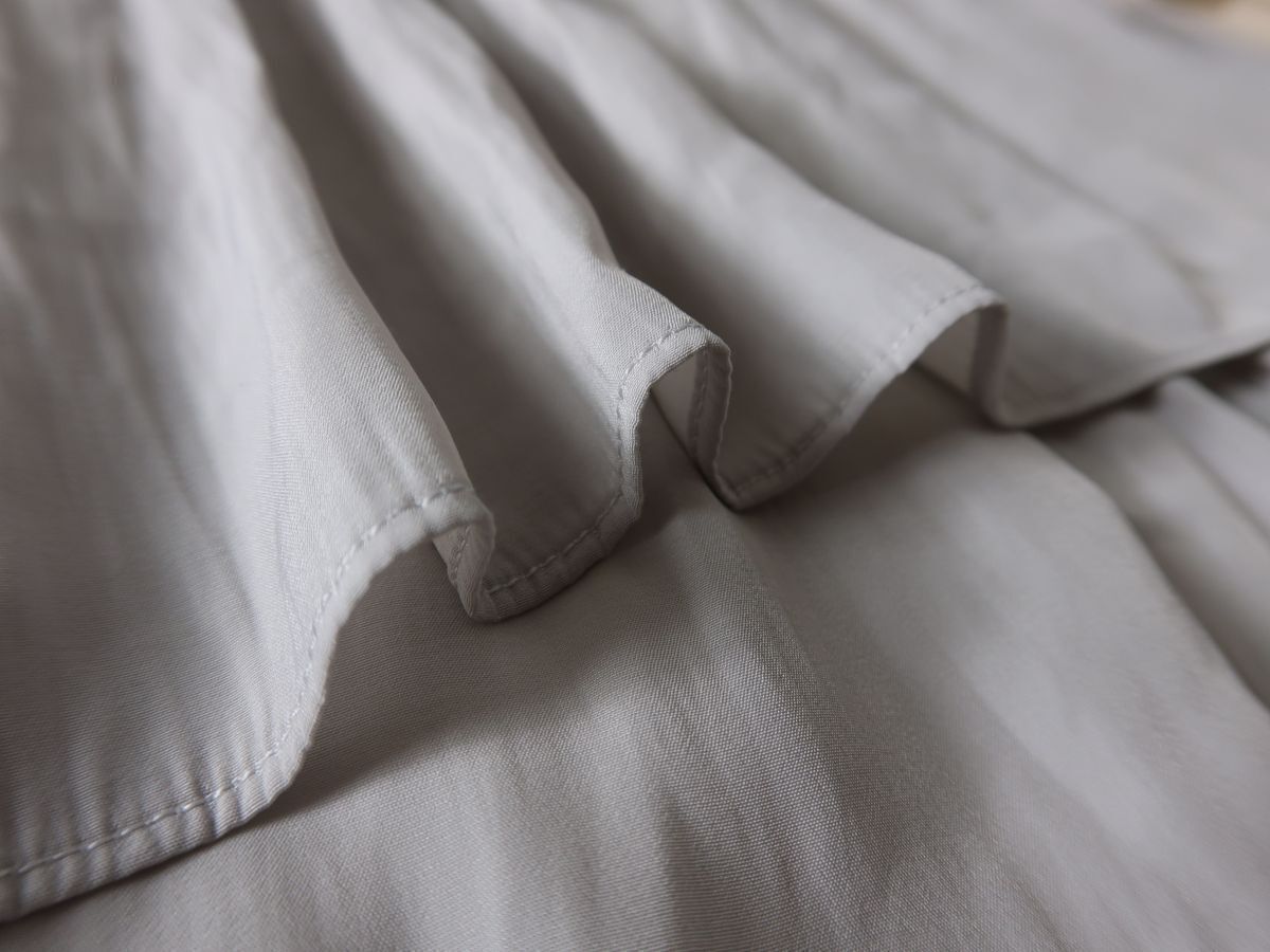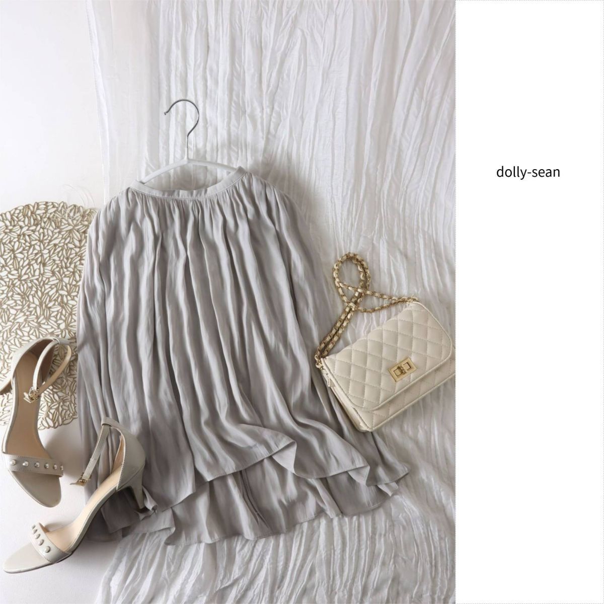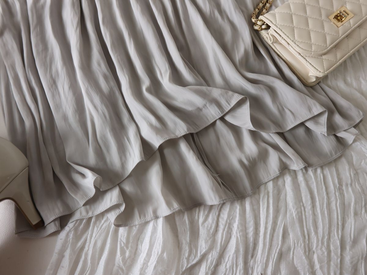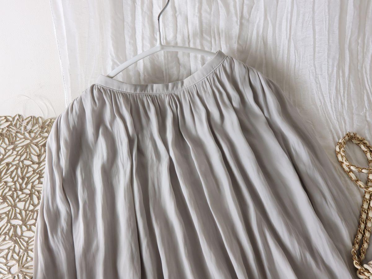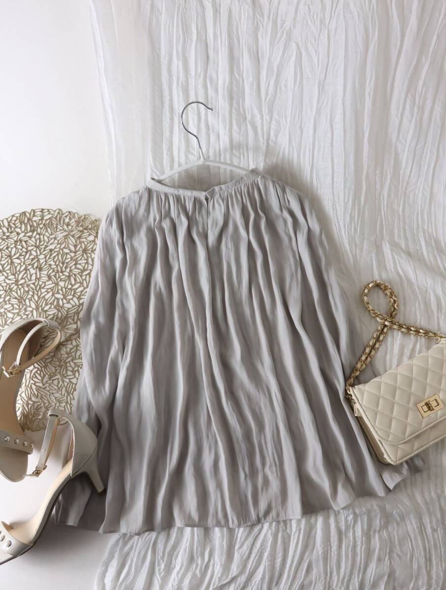 自然な落ち感のある素材なのでボワッと広がりすぎずにきれいなAラインシルエットです。