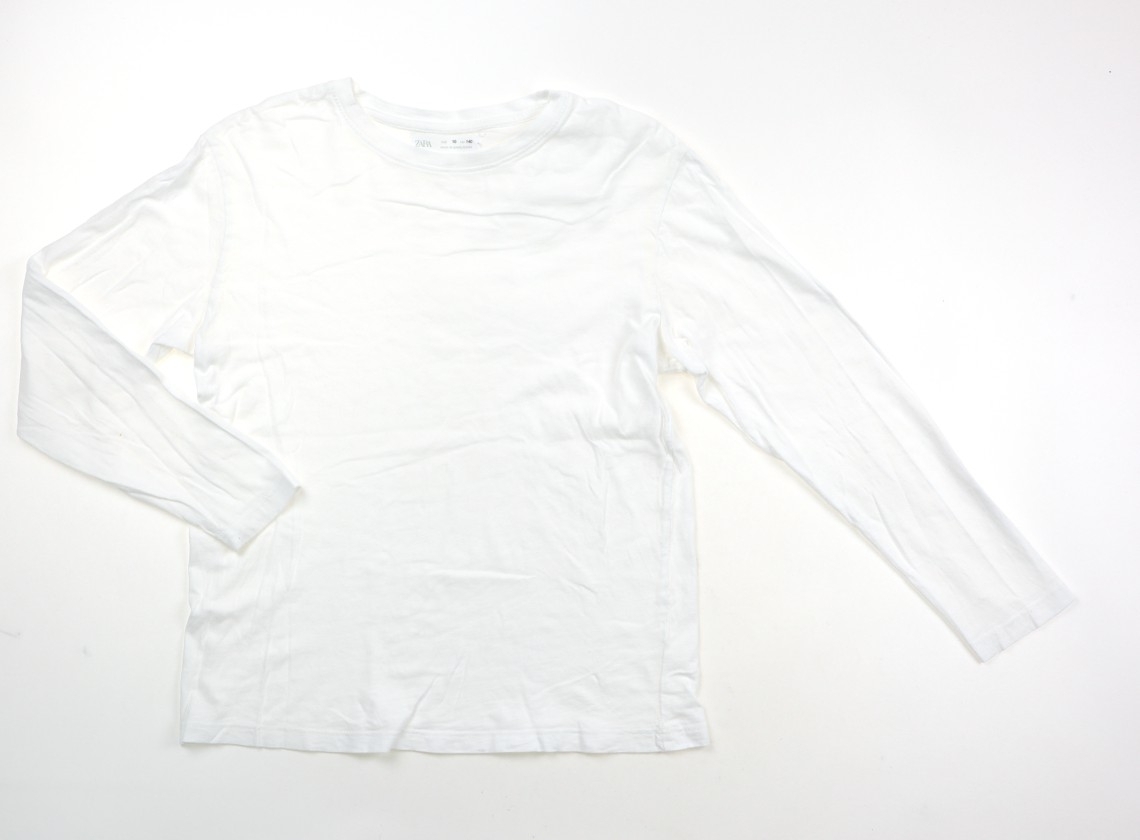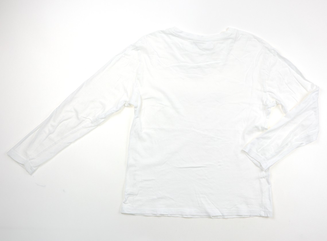 品質タグが切られています。やや透け感のある薄手コットン素材。多少ヨレ感はありますが、目立った汚れなくまだ活躍してくれそうです。