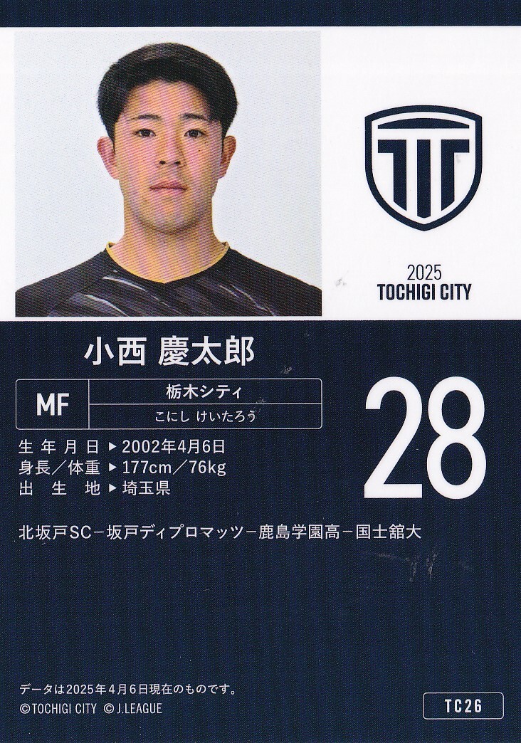 栃木シティ 2025 オフィシャル TC26 小西慶太郎