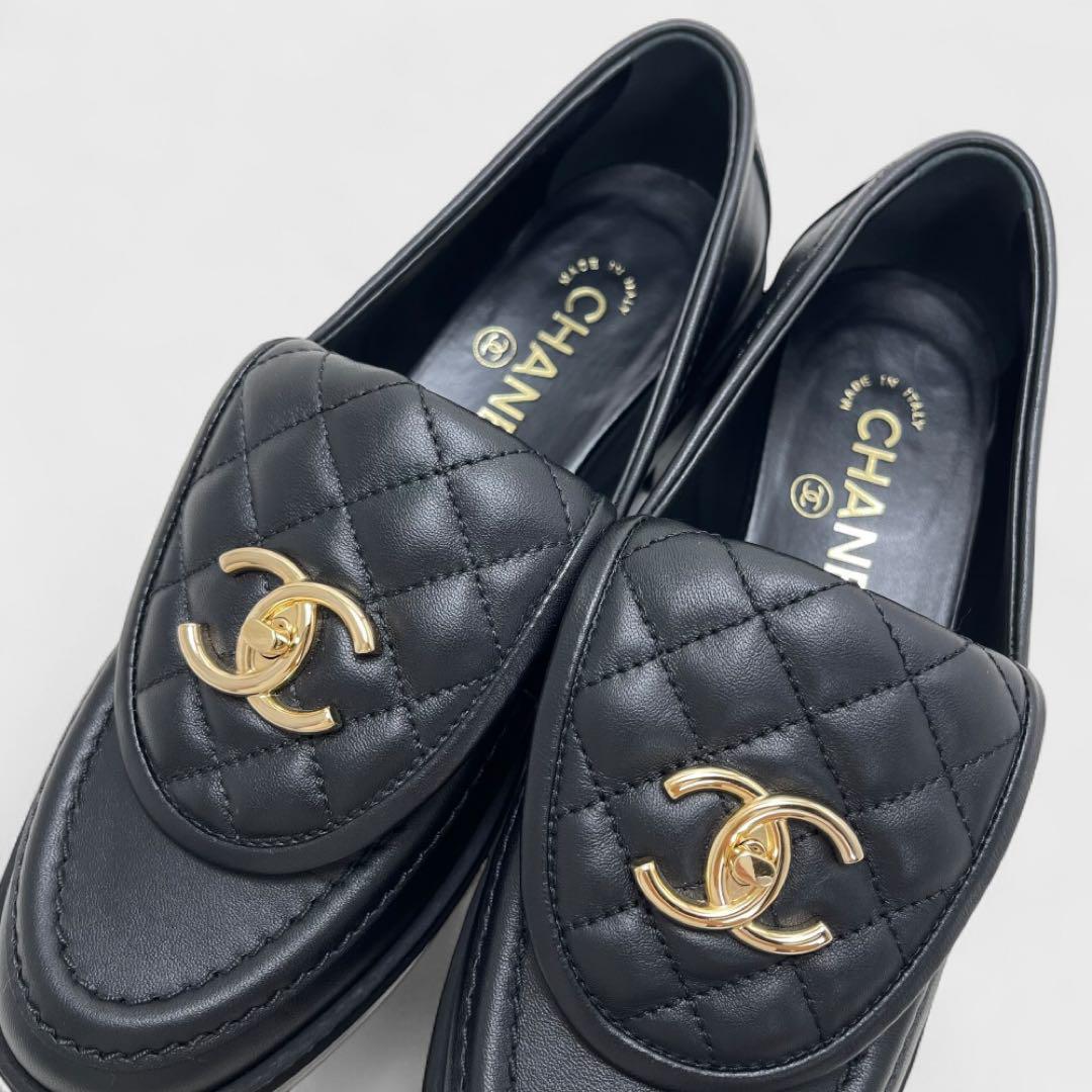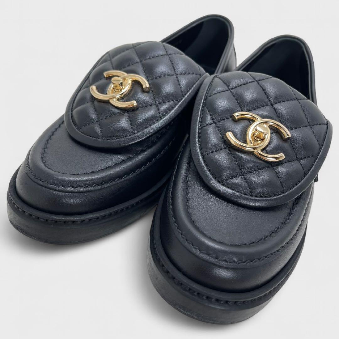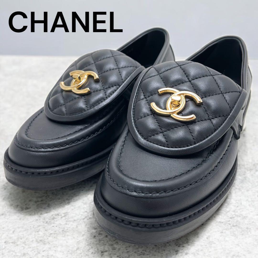 【未使用級】CHANEL シャネル ローファー ターンロック マトラッセ 黒 サイズ36C 約23㎝ ココマーク ラムスキン ゴールド金具 イタリア製 | |||