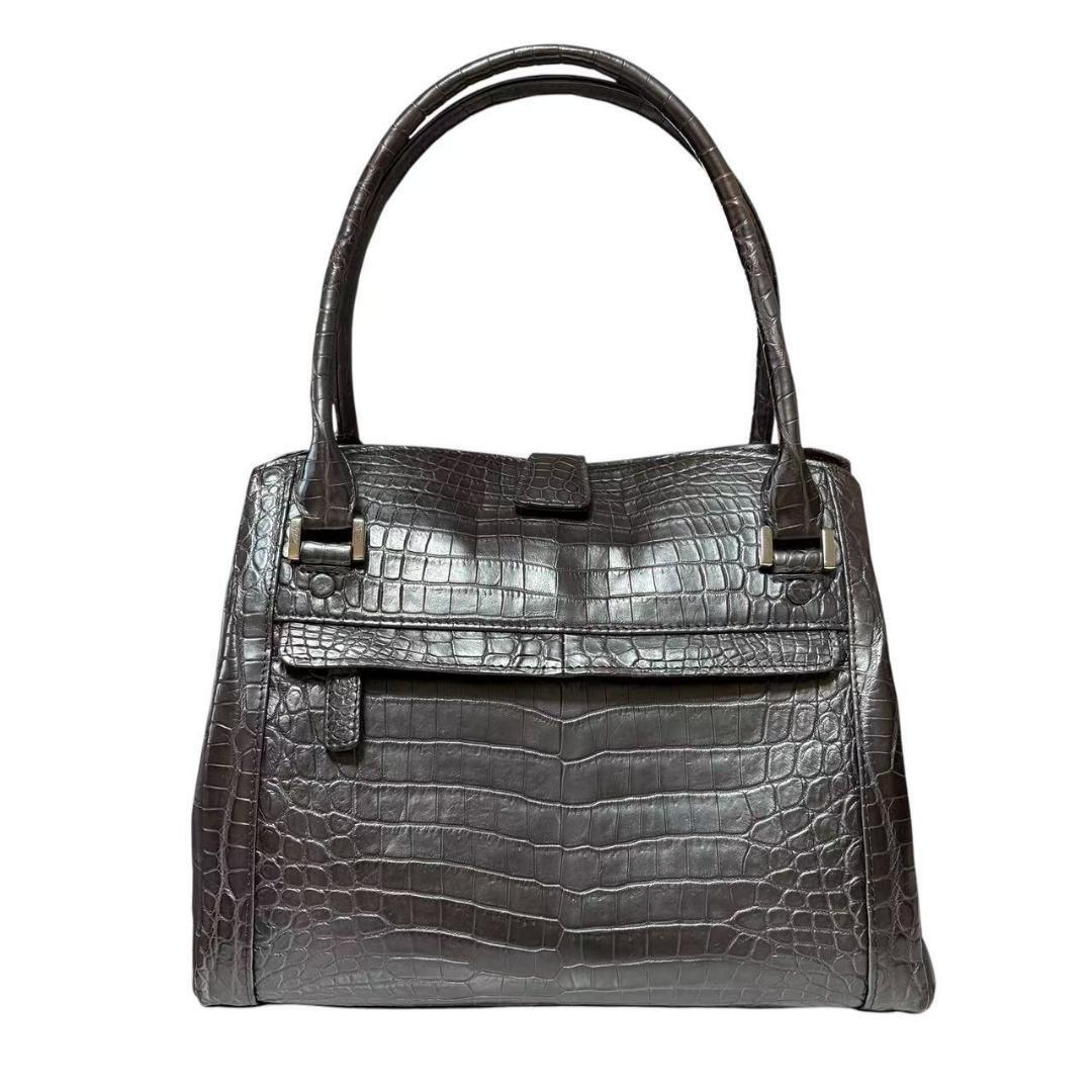 美品 クロコダイル マット ワニ革 ハンドバッグ
