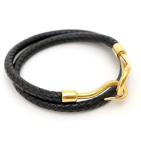 | 商品名 | 【広尾店】エルメス HERMES ジャンボチョーカー ブレス レザー 二重巻き 黒 ゴールド金具 |