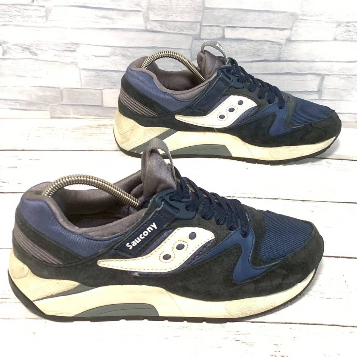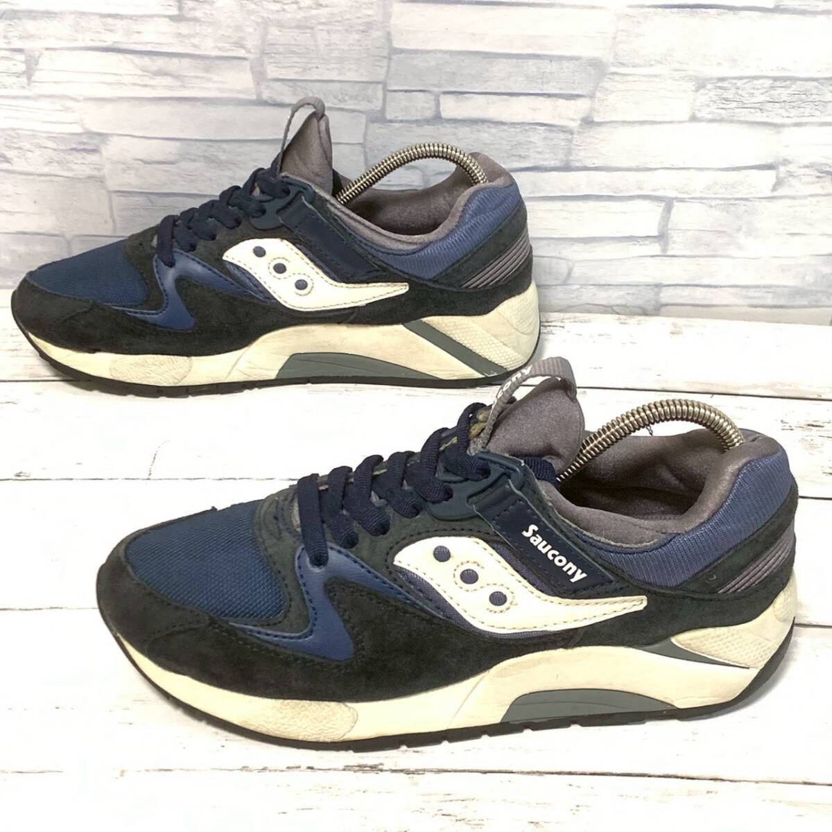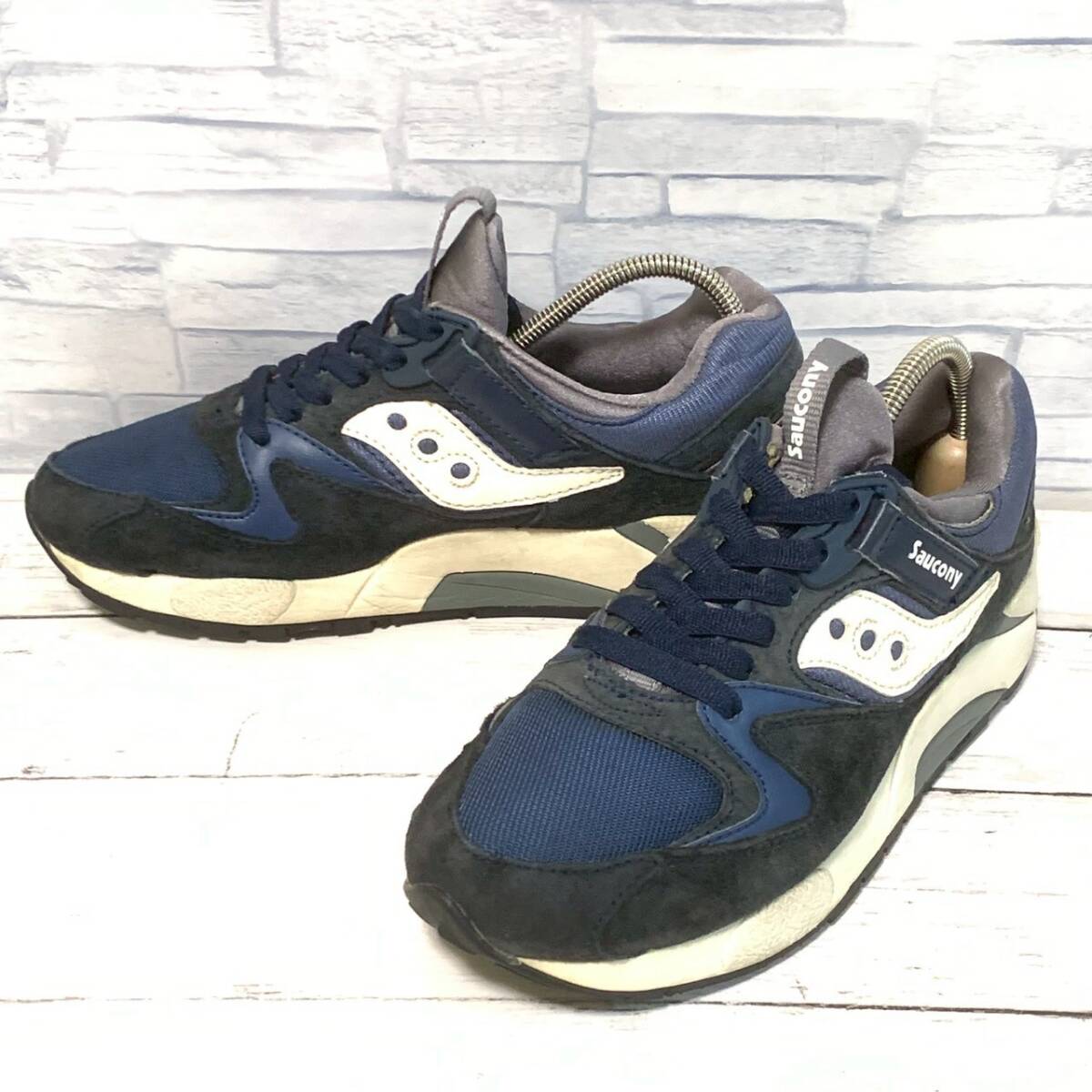 R9187bA 雰囲気◎なUSED感!! Saucony サッカニー US6(24cm~24.5cm位)スニーカー シューズ ネイビー ブラック メンズ カジュアル 古着
