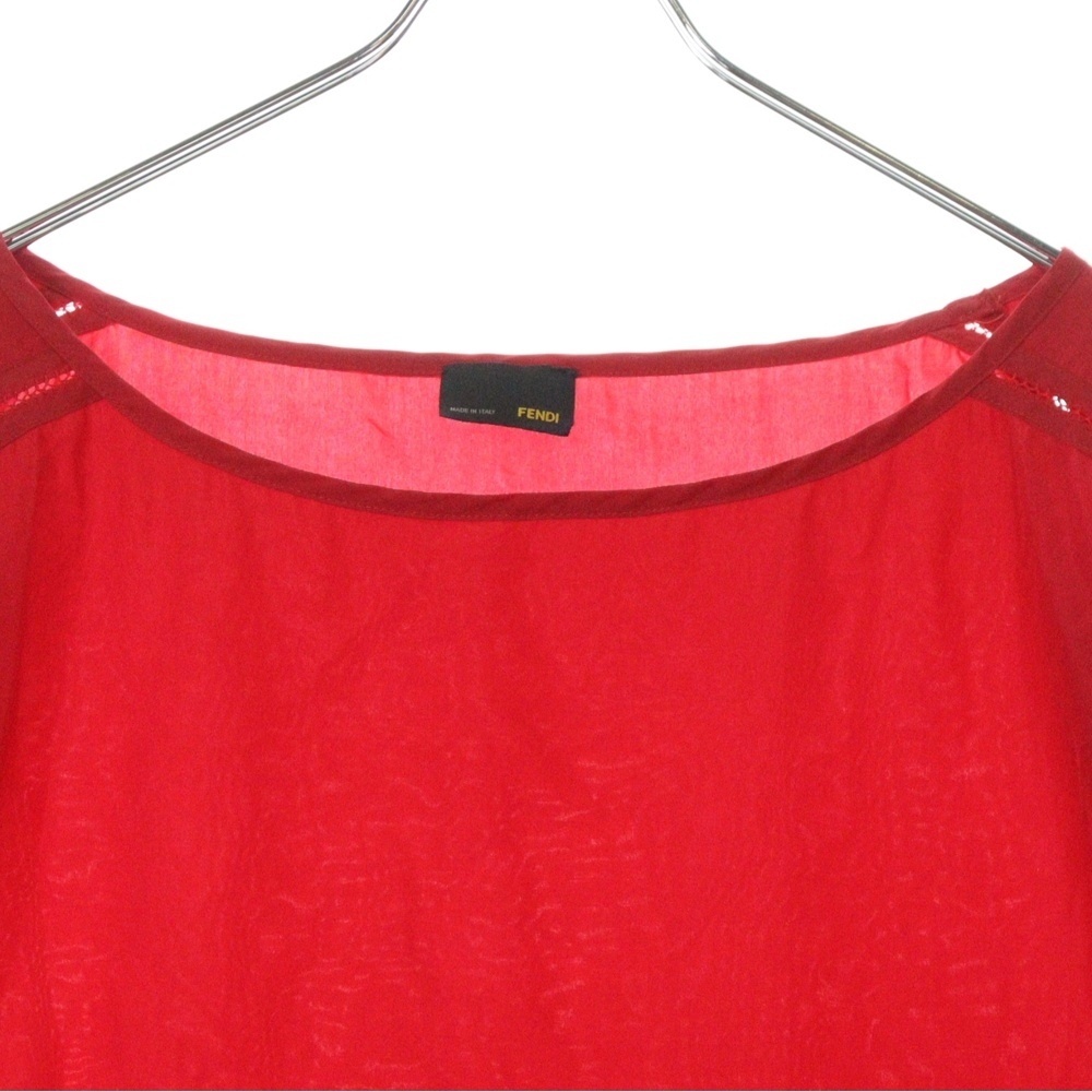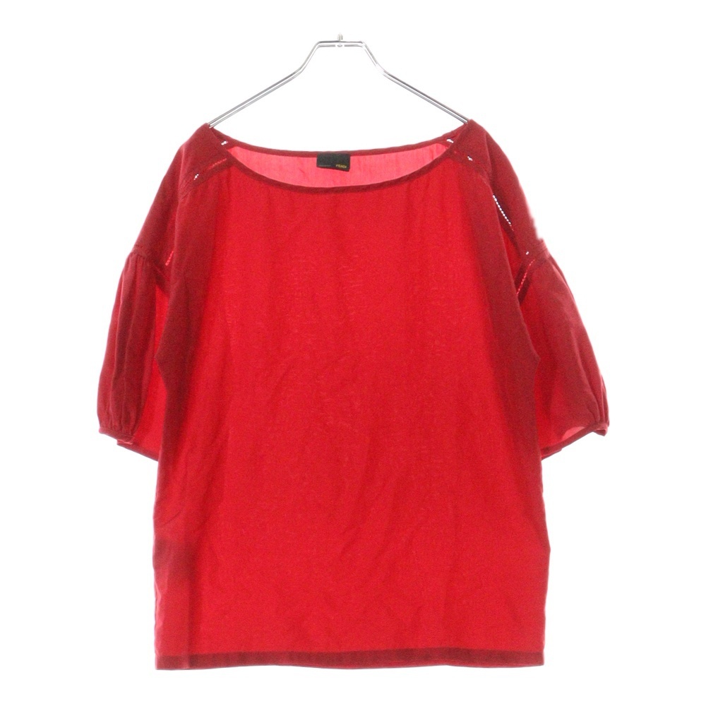 FENDI フェンディ シルク ギャザースリーブ プルオーバー 半袖ブラウス レッド レディース FT6055 NBP