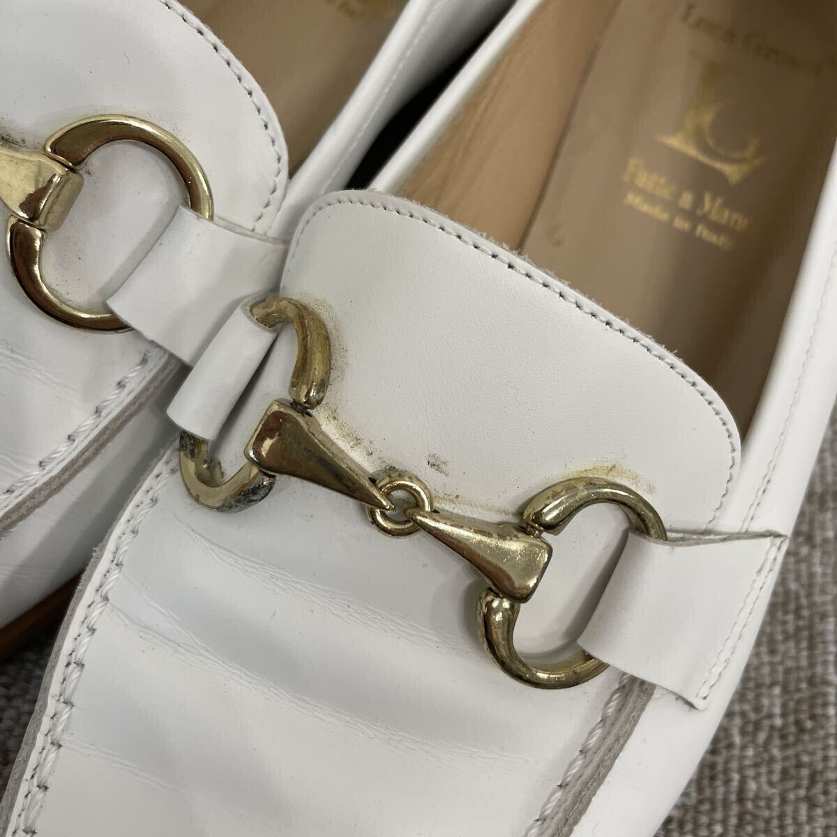 古着(中古品)のため多少の使用感はありますが、ソールの減りや目立つダメージはなく、まだまだご使用いただけます。白なので細かな傷スレが目立つ部分があるので神経質な方はお控えください