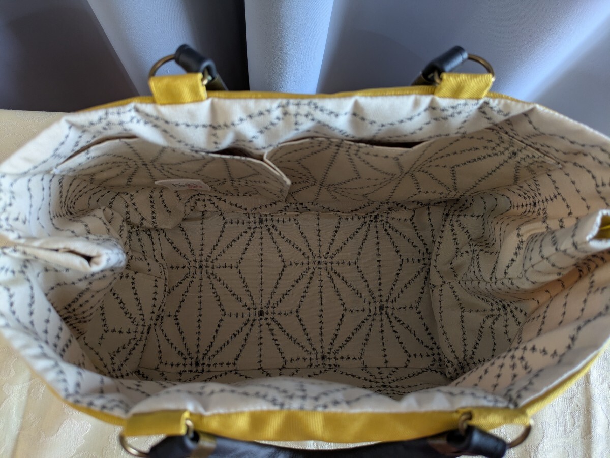 両脇にあるスナップボタンでバッグの形を変化できるようになっています。