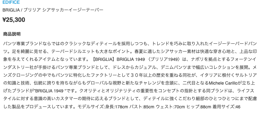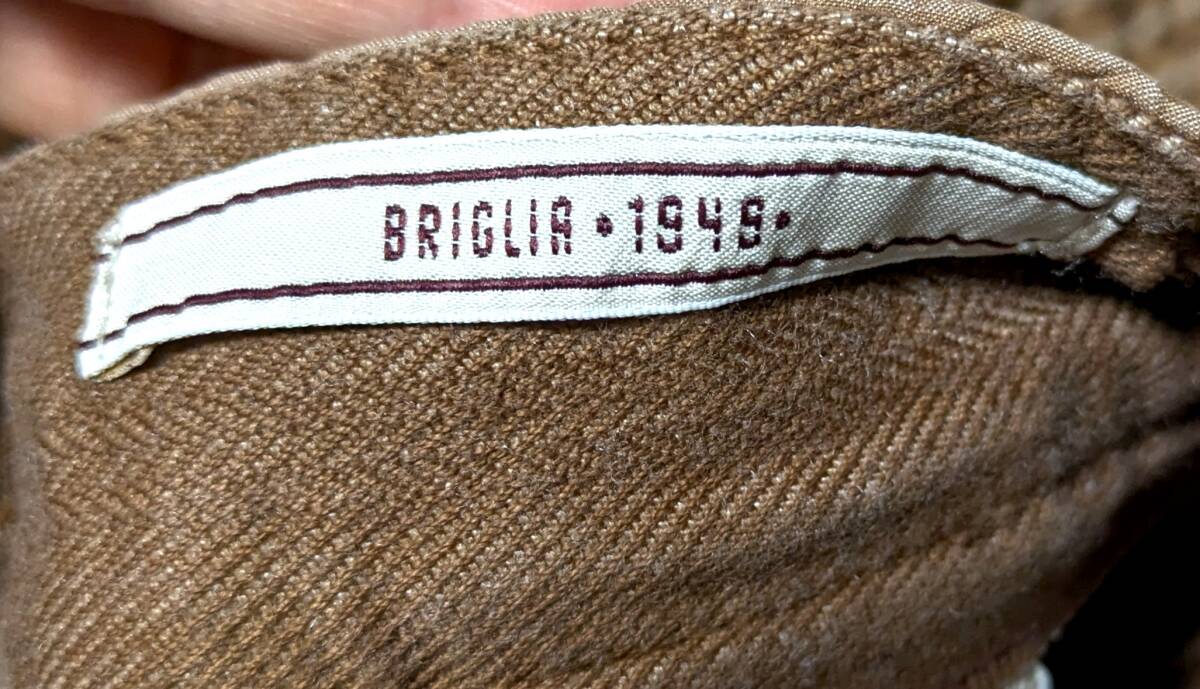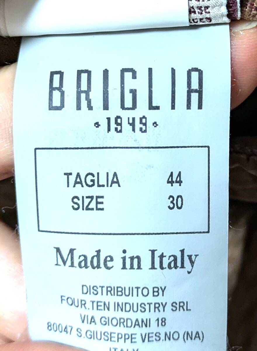 イタリアの伝統的なパンツブランド「Briglia 1949」春夏サッカー素材。イタリア職人的な作りで、釦もこだわったものが使われています。定価結構する良いパンツです。使用感少なく状態良いのでお得かと思います(目立つ傷汚れなし)。ブラウン。44サイズ(w最大84,股上24,わたり32,裾幅17, 股下64,5cm)。