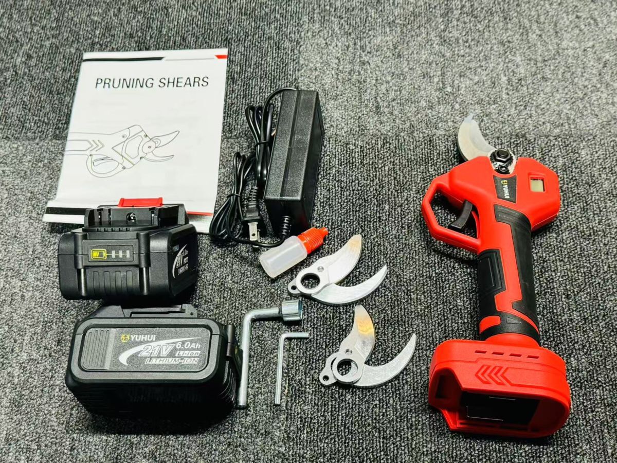 【30日間保証付き 】新型電動ハサミ 充電式 切断直径40mm 庭木/枝切り/果樹用/電線/ケーブルなど 剪定鋏 21V電池2個&替刃2セット