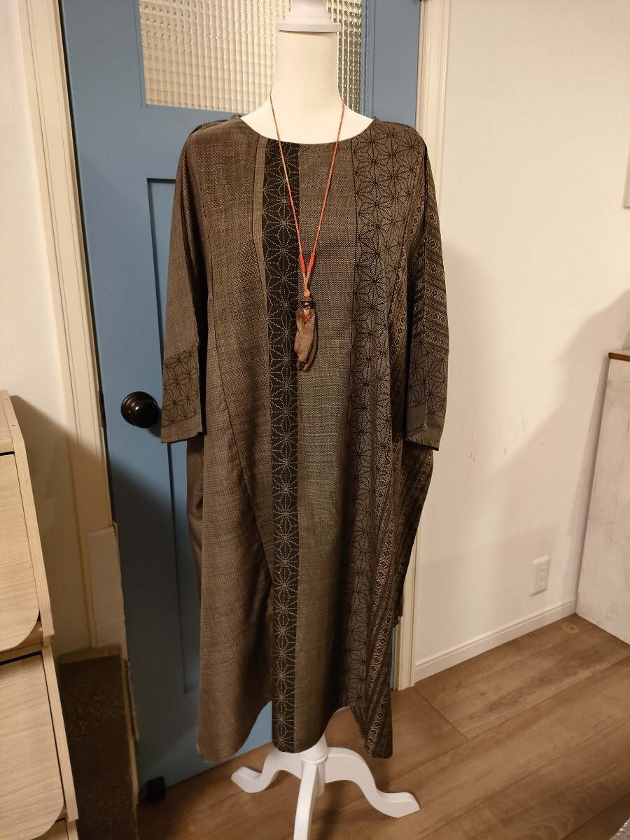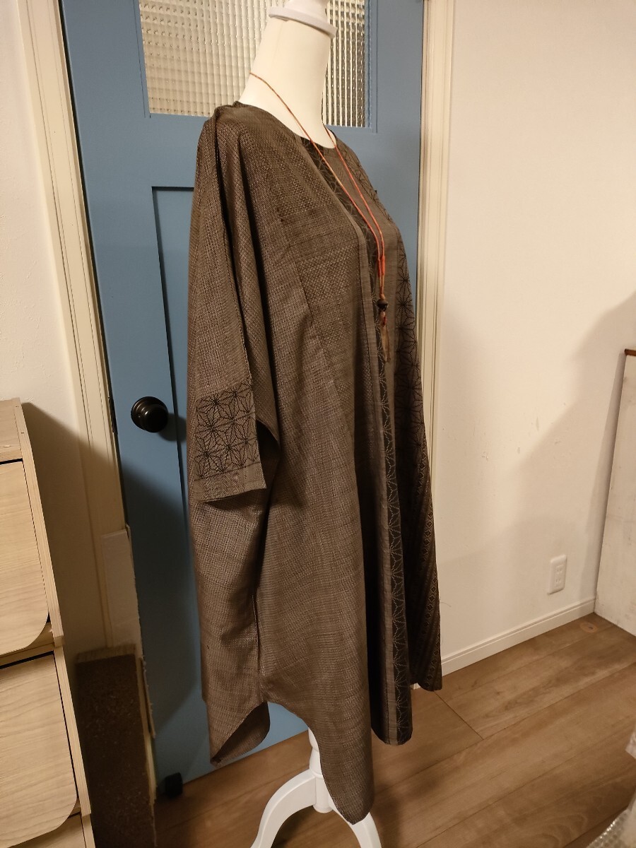 3種類のアンティーク泥大島紬より 遊び心のある ふうわりチュニックワンピです。