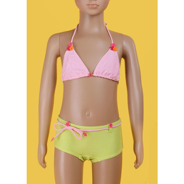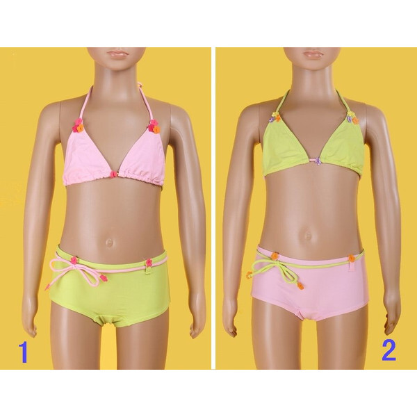 【半額処分・メール便送料無料】激安★女児/女の子 キッズ&ジュニア 水着●タイプ2(上:黄色、下:ピンク)●7-8サイズ