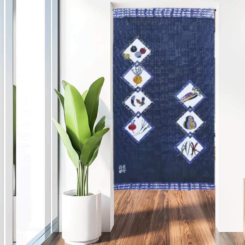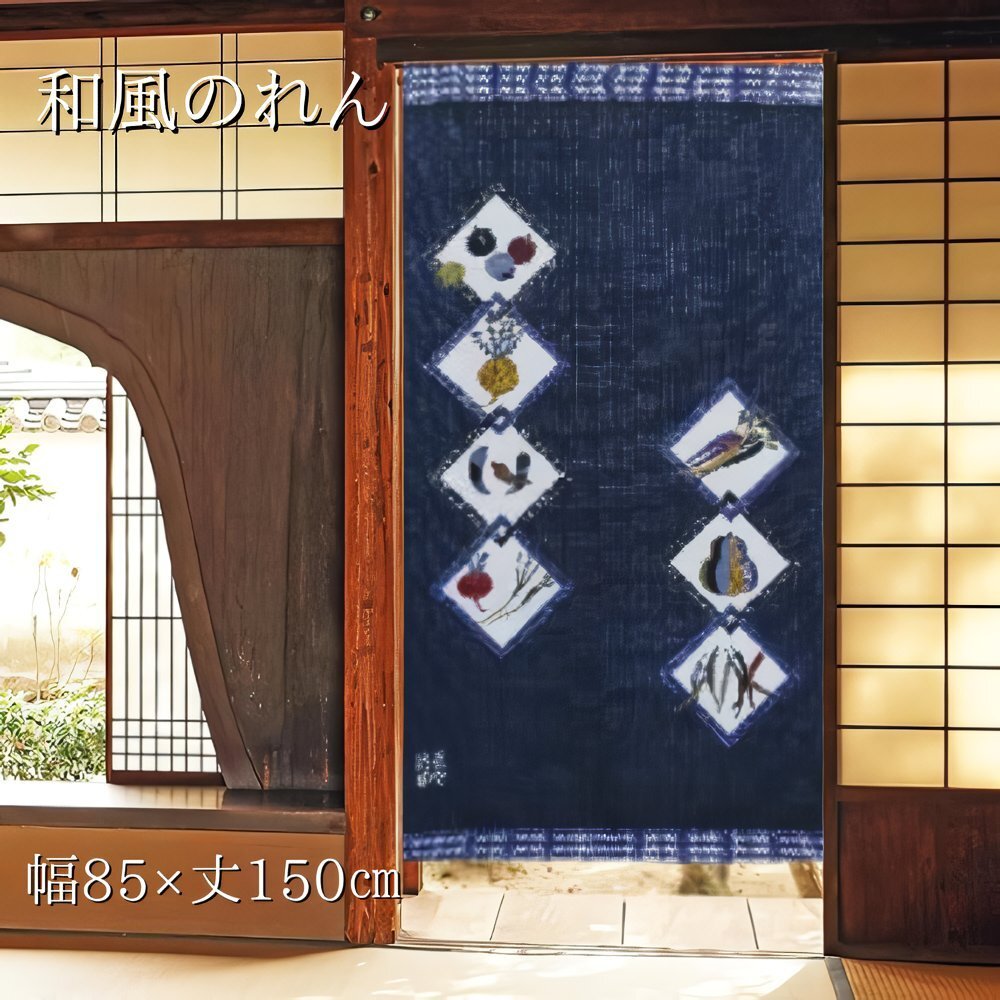 のれん 暖簾 おしゃれ 間仕切りカーテン 目隠し 和風 和柄 和モダン 和風モダン 和風暖簾 京野菜 85×150cm