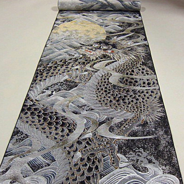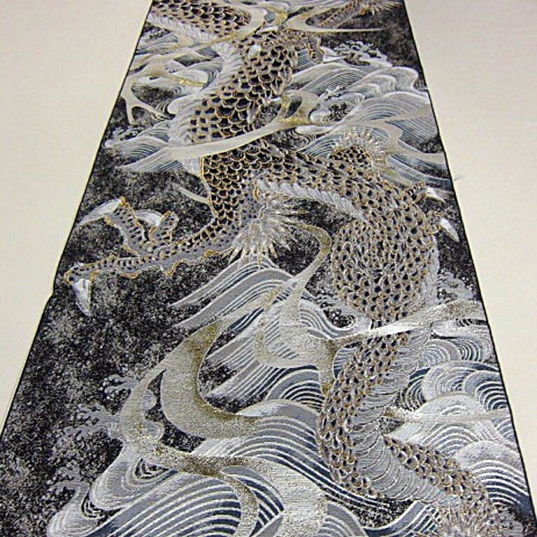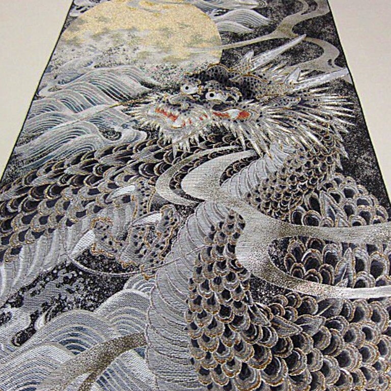 逸品 新品未仕立 西陣織高級丸巻袋帯 細密織 出世帯 昇龍 ドラゴン