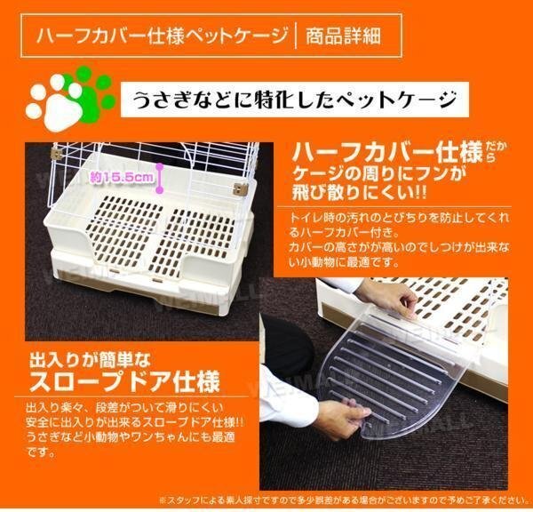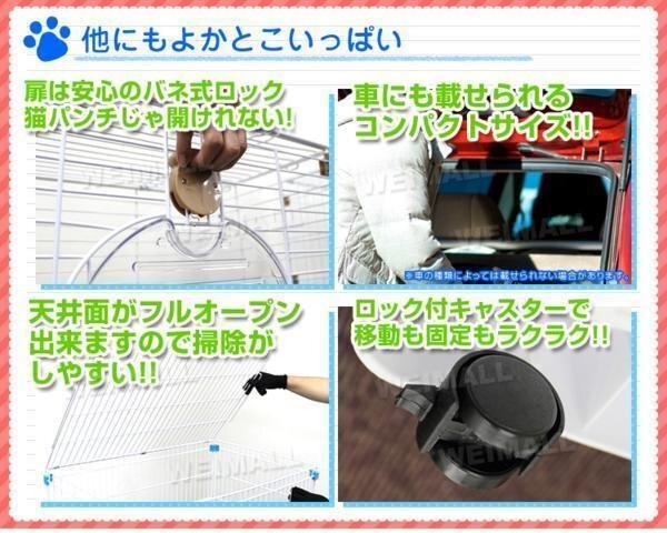 ★★当店人気商品!!★★ 小型犬、ネコちゃん、うさぎにおすすめ! 使いやすさ、掃除のしやすさを追求したペットケージです。 引き出しトレイが付いているので付属のプラスチックすのこを敷けば、小型犬・猫を外に出さなくても簡単な掃除ができます。 上部を取ればペットサークルとしても使えます。 スロープドア仕様だから出入りが簡単! 飛び散りを防ぐ高い壁! 壁付きトレーで、尿や毛の飛び散りを防ぎます。 組み立て簡単! キャスター付きで移動や掃除もラクラク♪ |