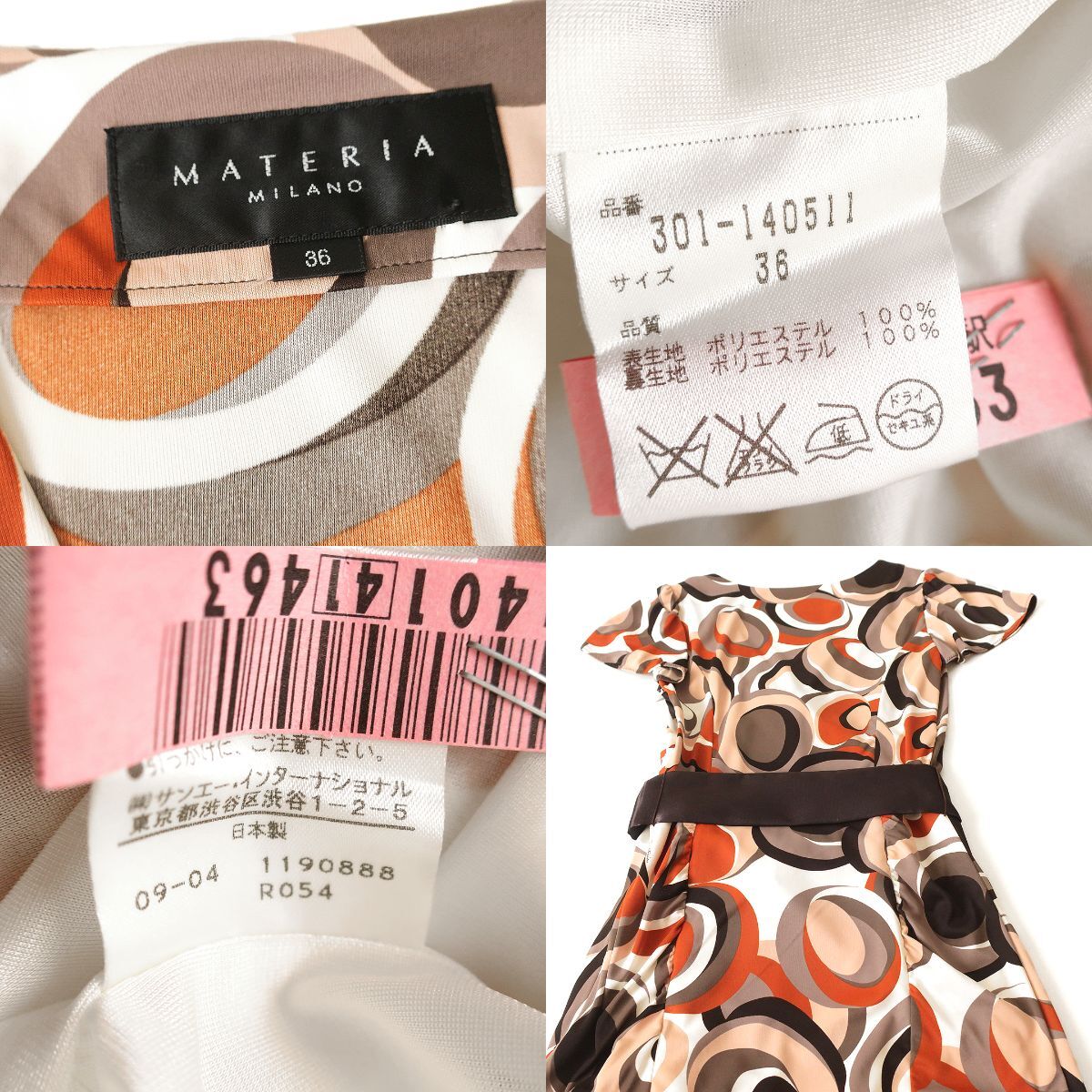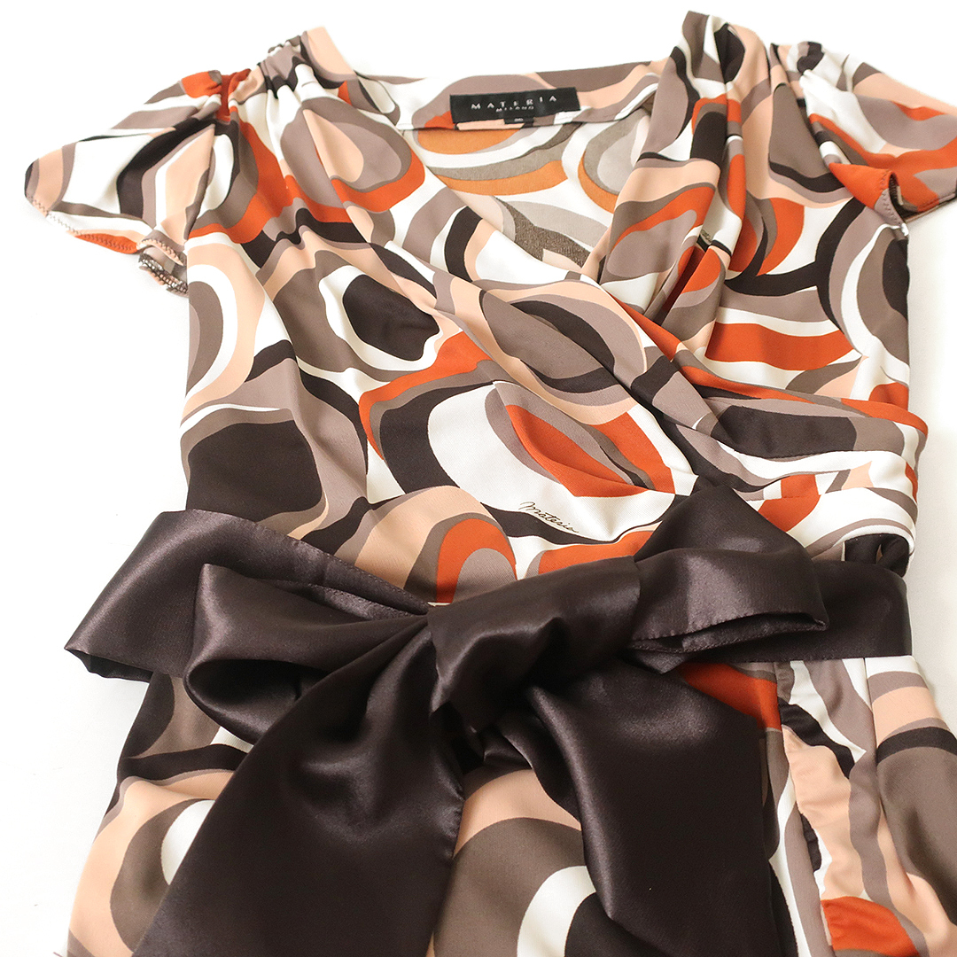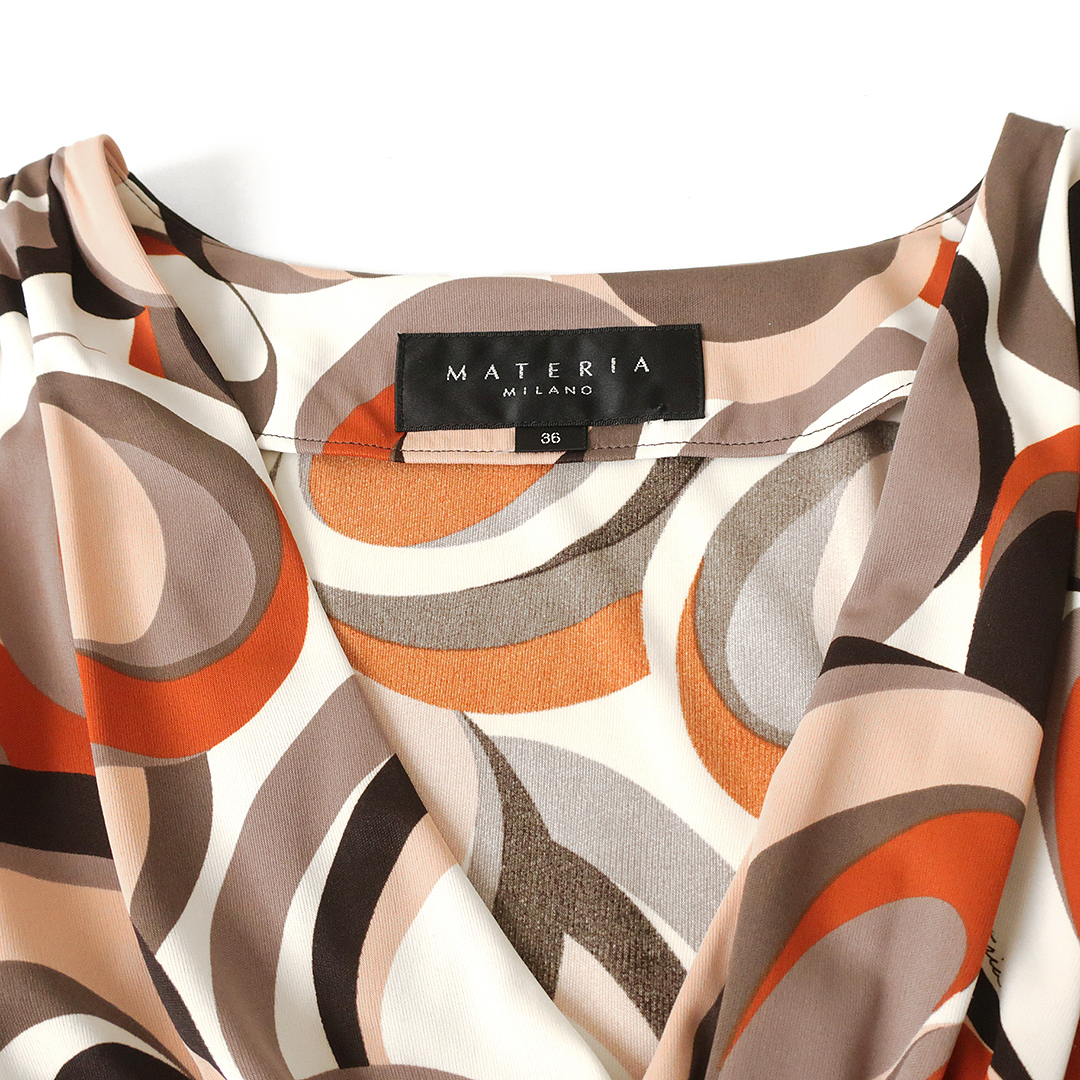 美品 MATERIA マテリア ジオメトリック総柄 ラップワンピース ベルト付 ブラウン系 36
