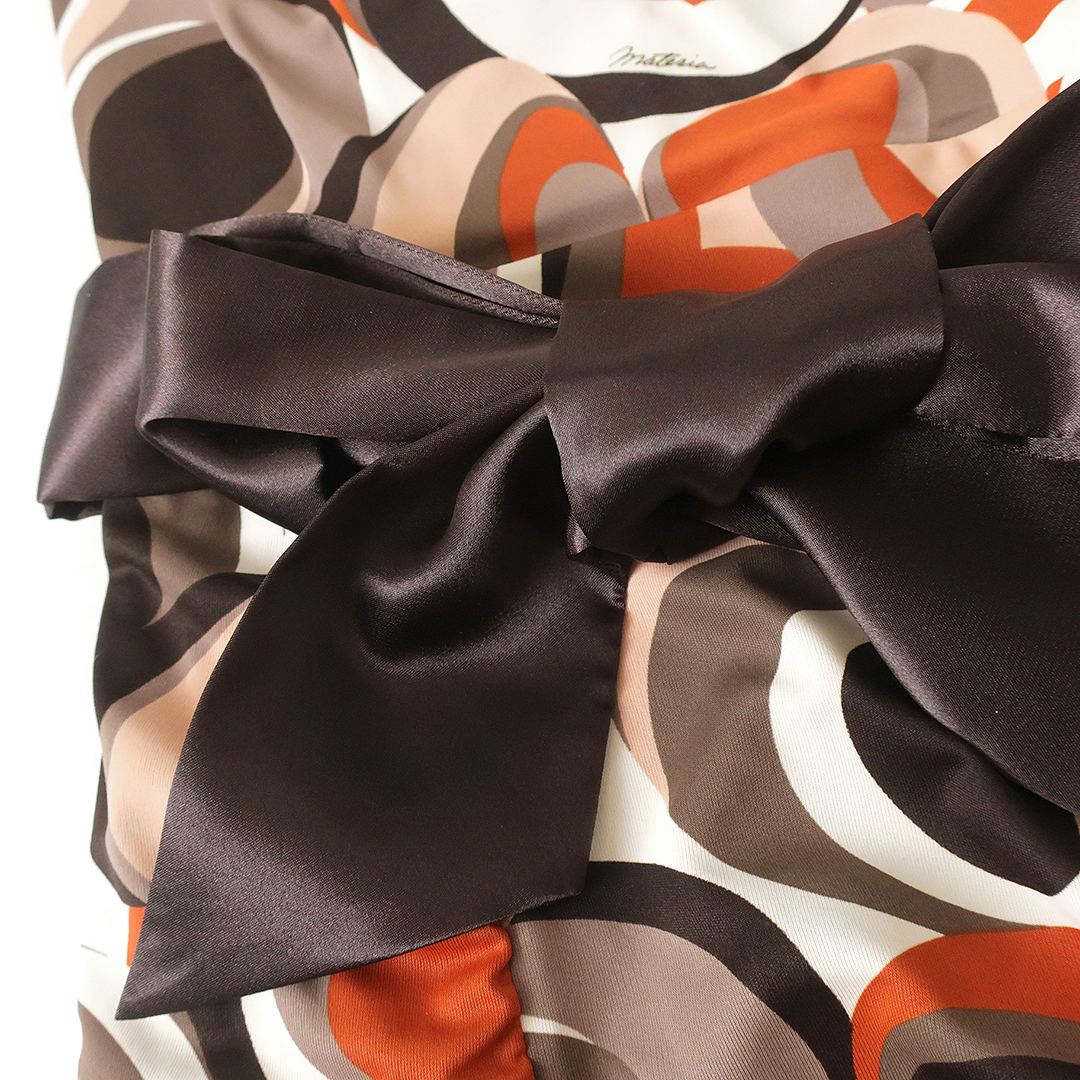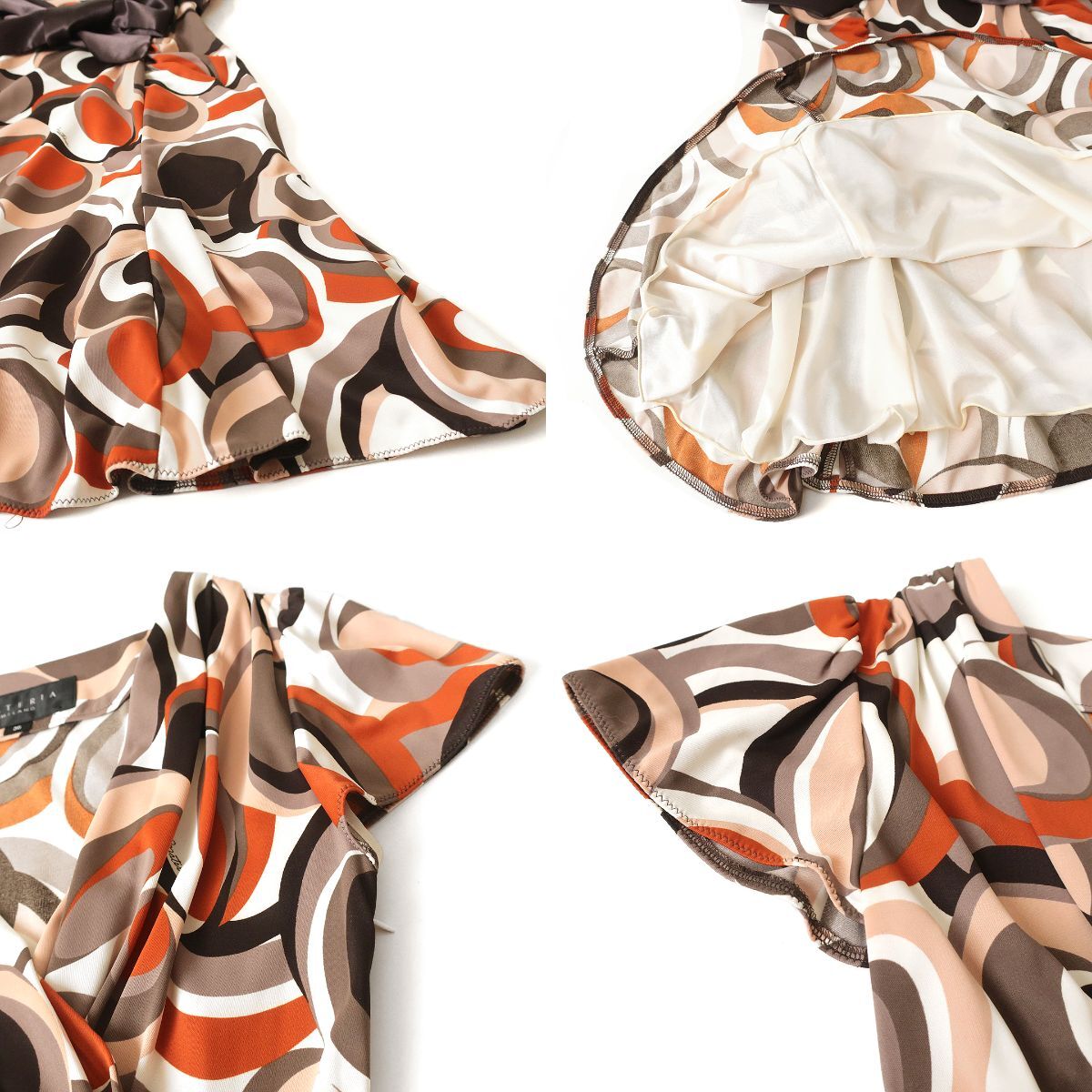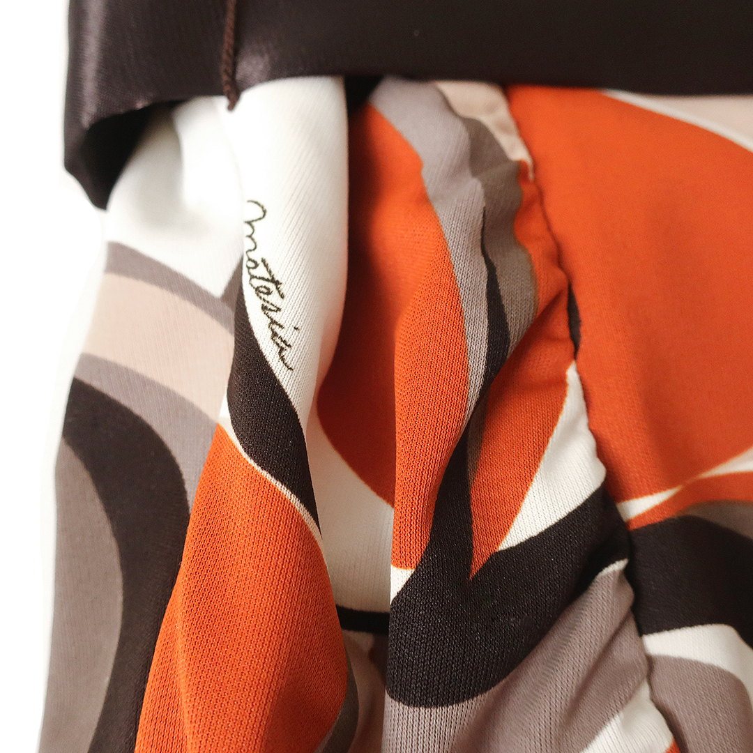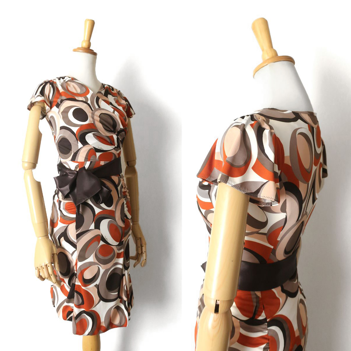 美品 MATERIA マテリア ジオメトリック総柄 ラップワンピース ベルト付 ブラウン系 36