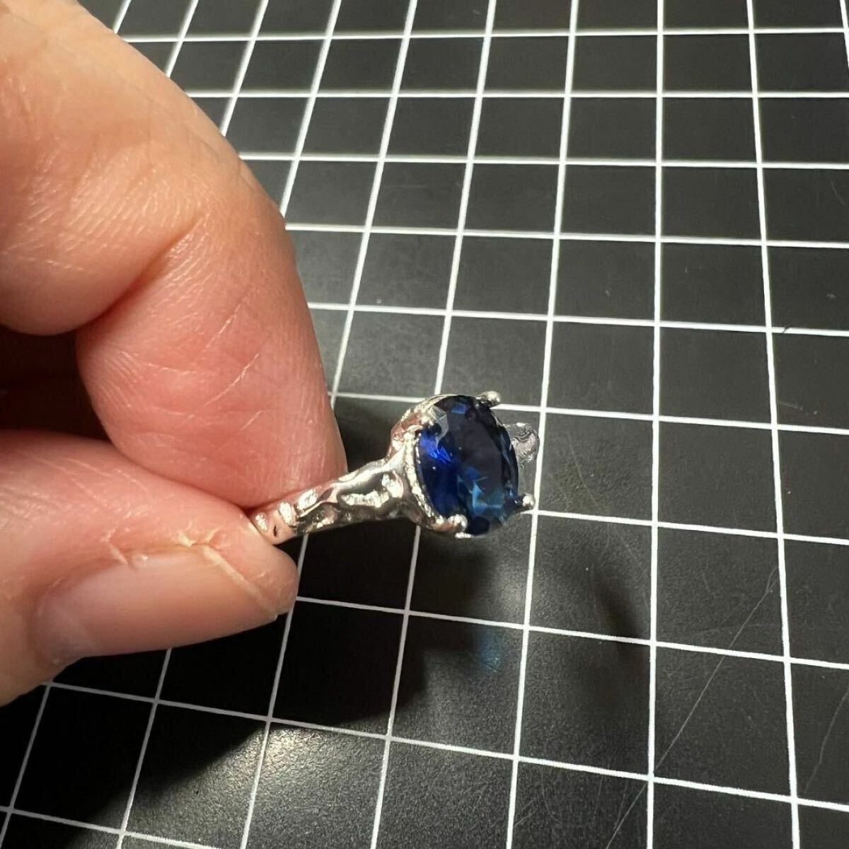 濃いブルーのストーンがシックなデザインのシルバーリングです。