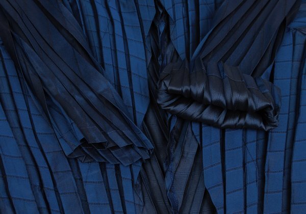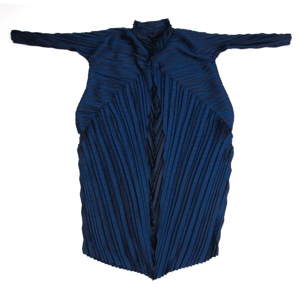 | イッセイミヤケISSEY MIYAKE プリーツ切替ドルマンコート 青2 |