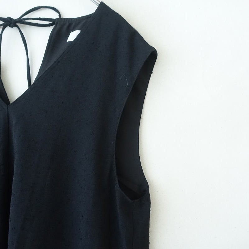 | 2024年コレクションIENAのMi バックリボンAラインワンピースです。カラーはブラックで、品よくツヤ感があるネップ素材で仕立てられており、IENAの人気スタッフみーさんがブランドとコラボレーションされたアイテムです。両Vネックデザインで、バック襟元のりぼんひも開閉のプルオーバータイプ、両サイドにシームポケットが付いており、裏地付きです。定価(メーカー希望小売価格)25,300円 税込みの商品です。 |