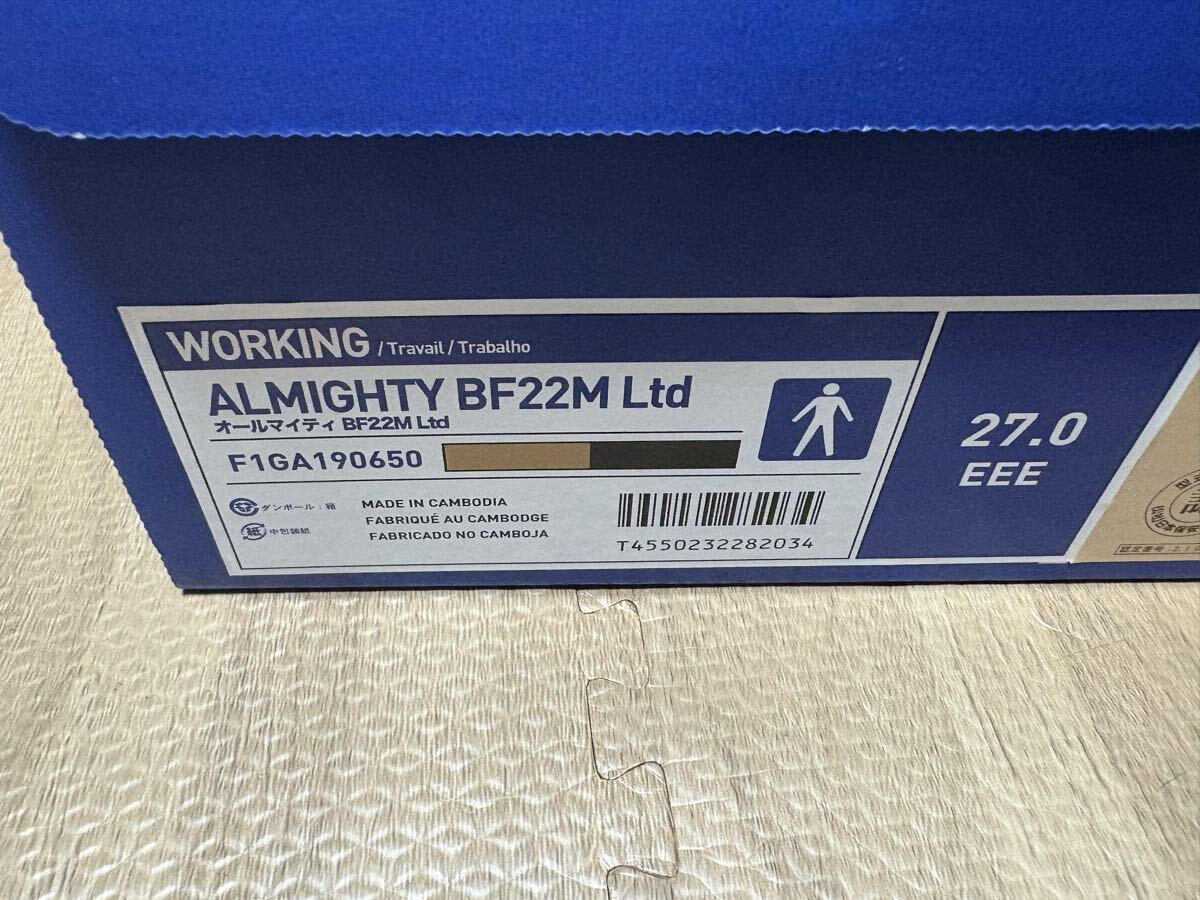 ミズノ オールマイティ F1GA190650 安全靴 BF22M 新品 27cm 限定品 ゴールド×ブラック ③ 送料無料