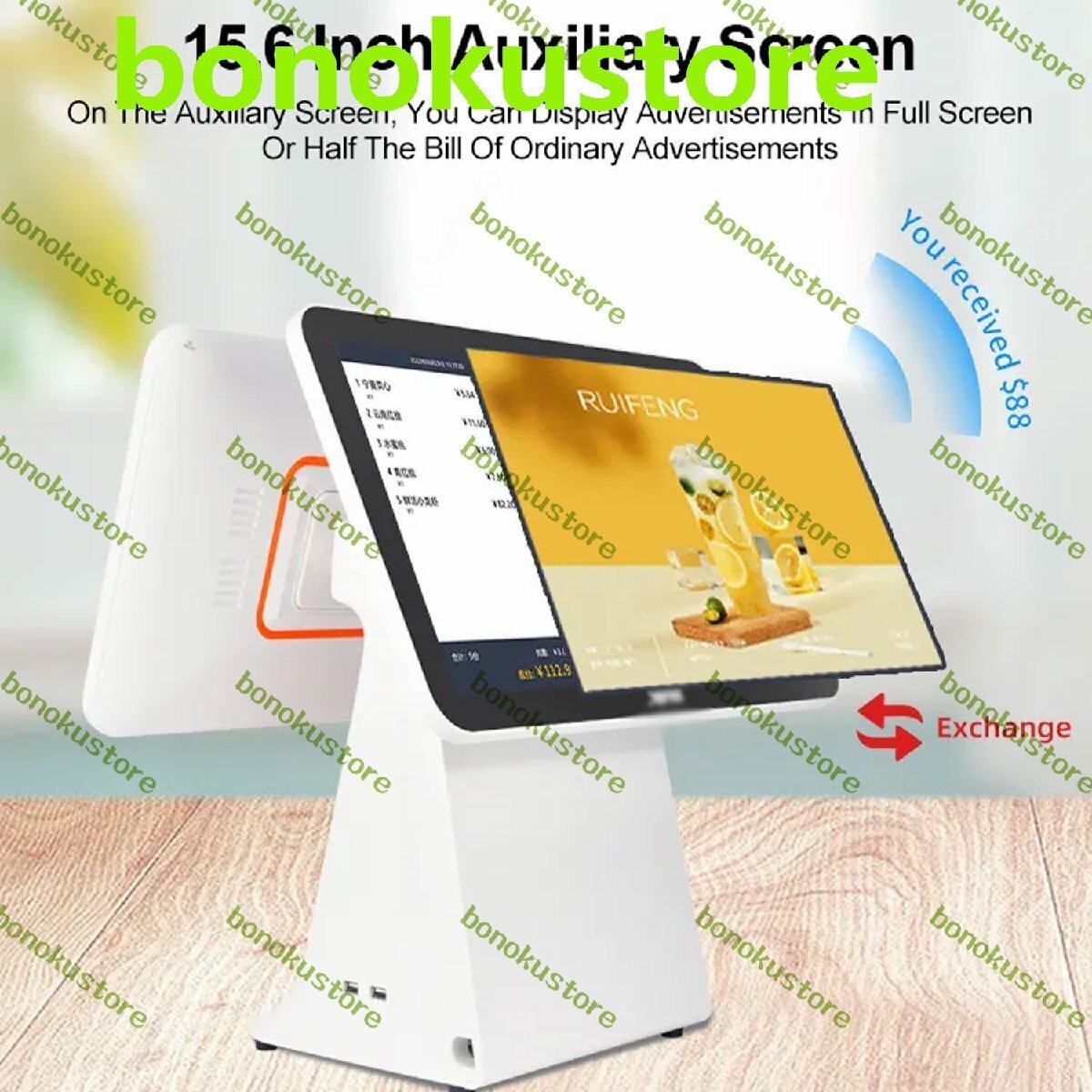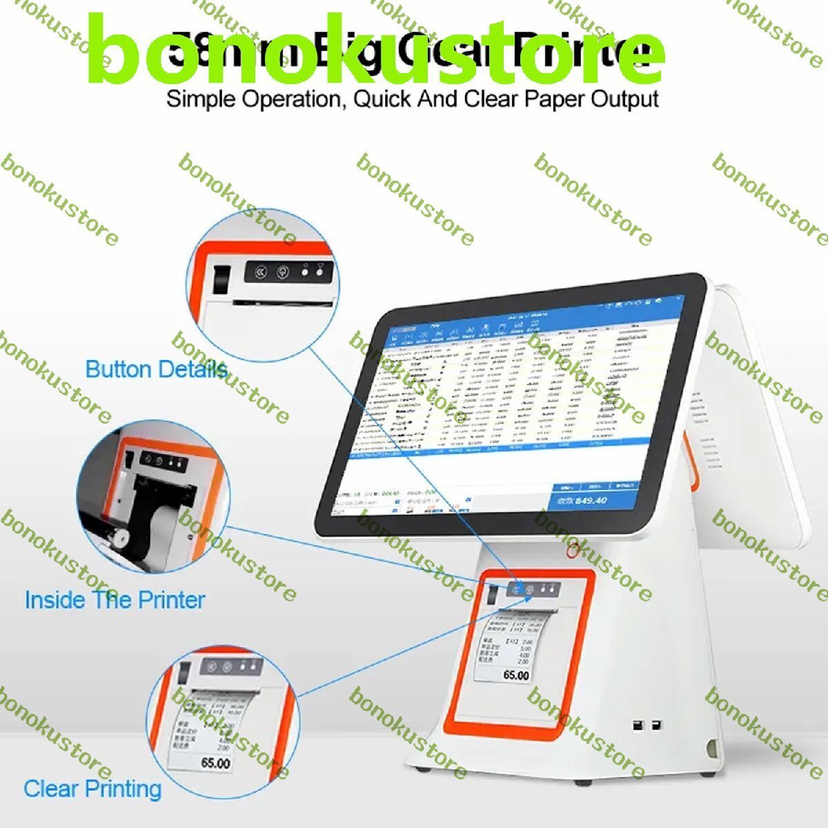 多機能:レジのメイン画面はデュアル15.6インチ1080Pフルタッチレジ操作を採用しています。画面はマルチアングル回転に対応しているので、さまざまな作業姿勢が可能となり、レジ業務が楽になります。強力な安定性、より高速な速度、さまざまなレジソフトウェアの実行が簡単 互
