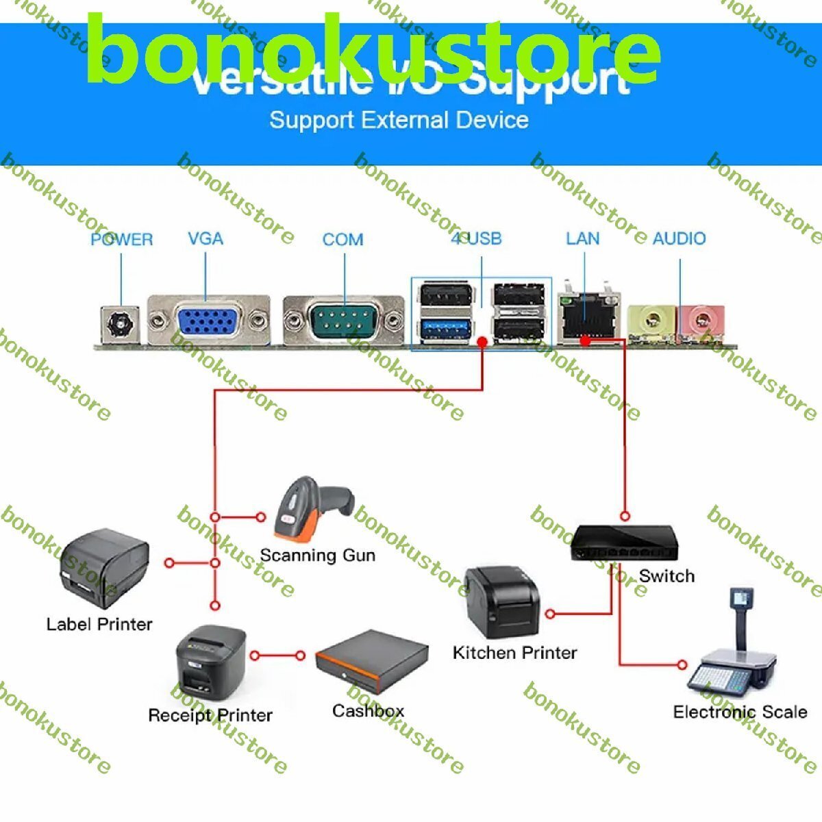 多機能インターフェイス: POS システム レジには多機能インターフェイスがあります: USB ポート 6 個、100M イーサネット ポート 1 個、VGA インターフェイス 1 個、キャッシュ ドロワー ポート 1 個、シリアル ポート 1 個、オーディオ ポート 2 個